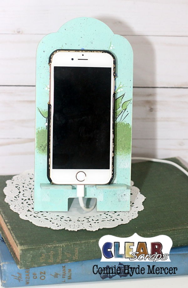 Hi, Connie here with a fun project using the Vintage Wood Phone Stand by Clear Scraps. There are so many ways you can add color to these phone stands, I chose to use acrylic paint. I have seen them with pattern paper and with nothing, natural wood. I loved all the looks!!!