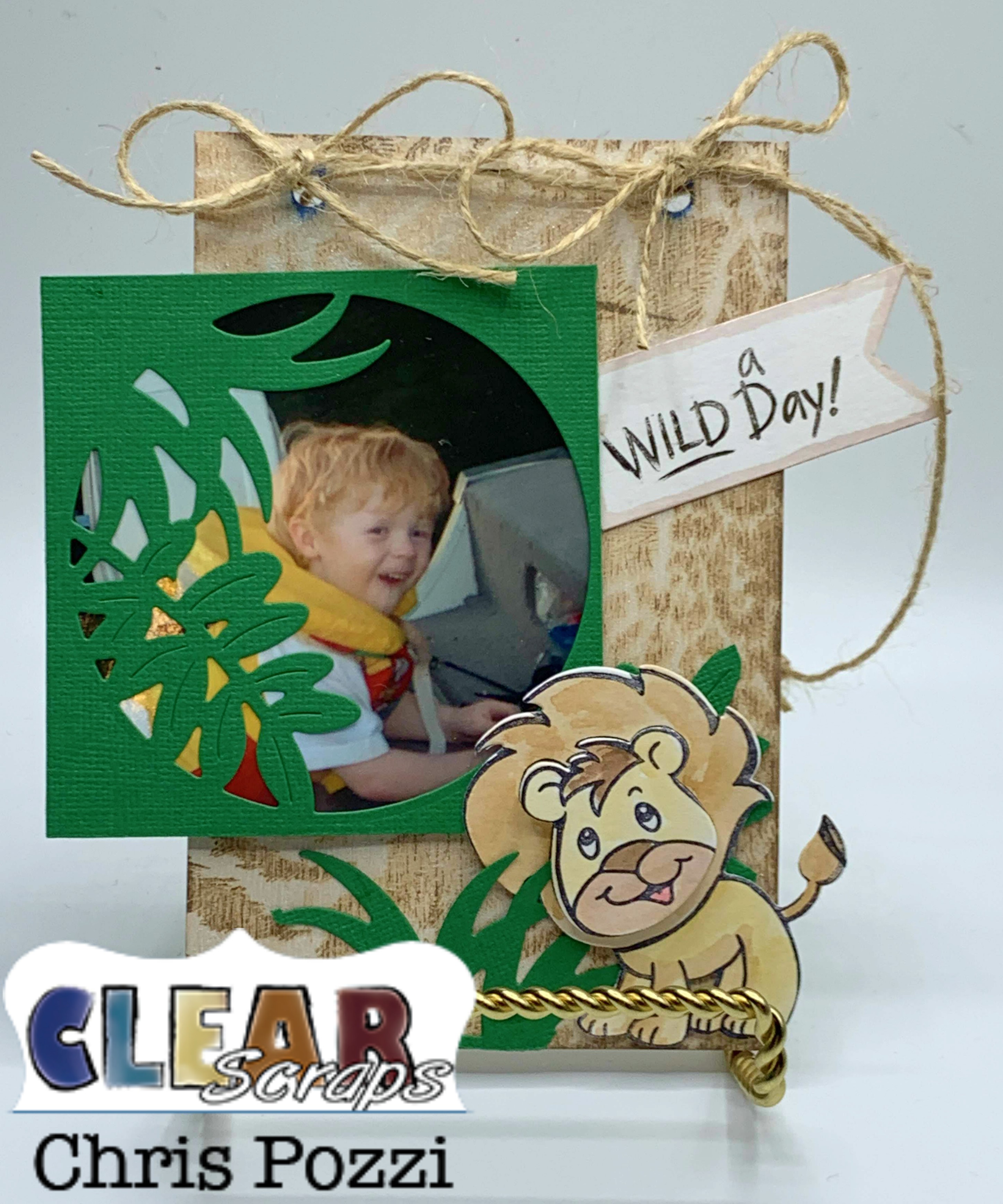 Greetings! Chris here and I am super "WILD" about sharing this project I created for the Stampendous and Clear Scraps team up! This is a project featuring my mischievous son at the awesome age of 2! You remember that age. This was from the trip where he squished dead minnows in his hands and chased his bigger sisters around the inside of the boat while my and dad tried to fish!