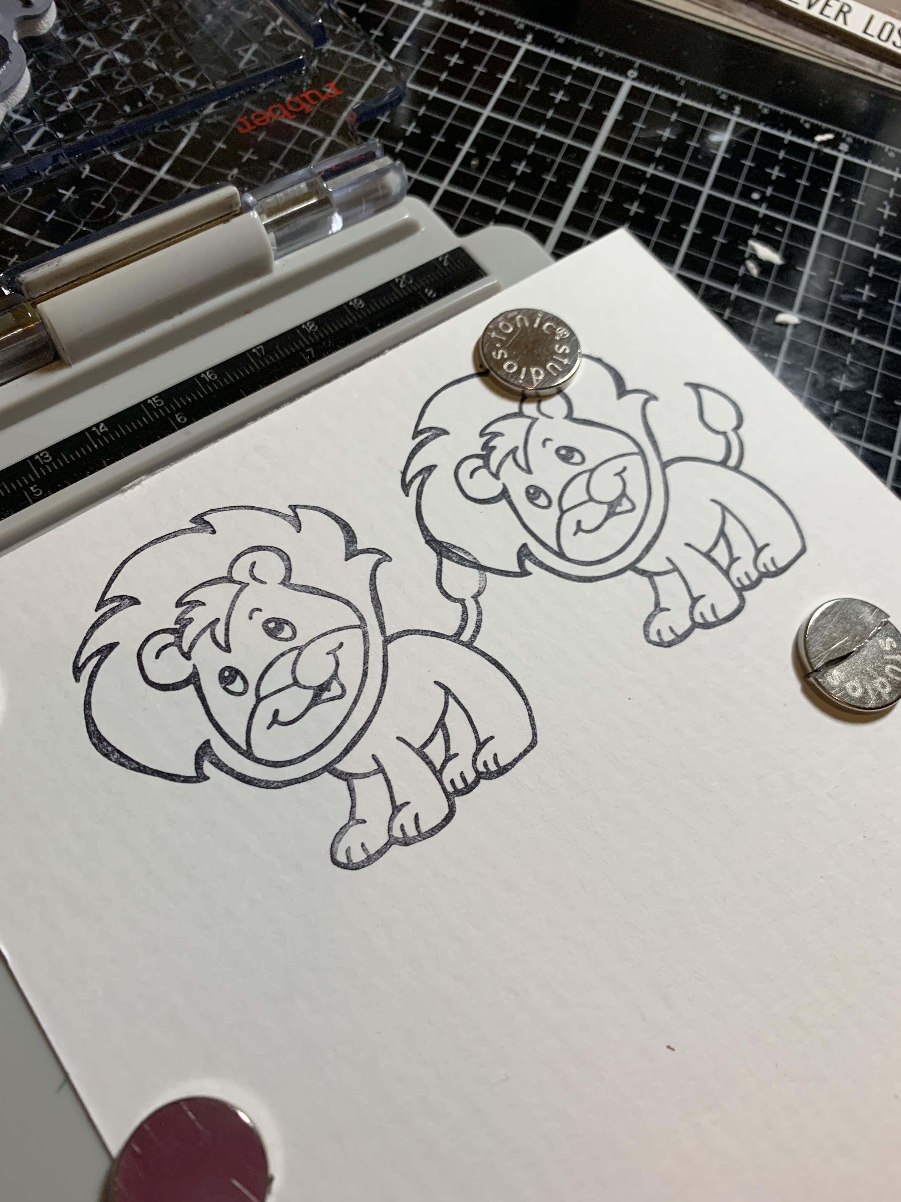 Stamp two lions with the Stampendous Lion Cling Rubber Stamps and cut using the coordinating die set. Color lion as desired.