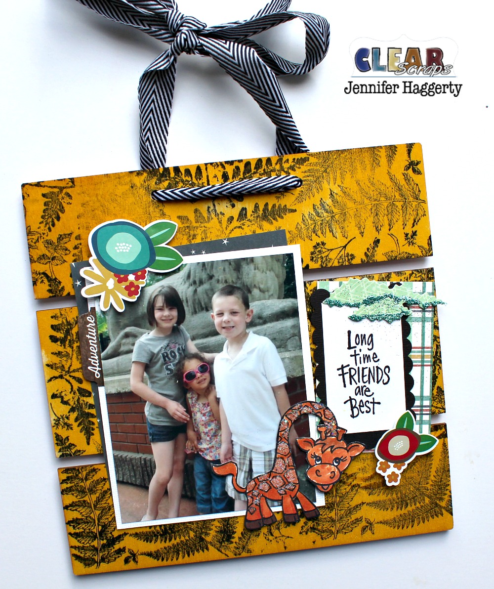 Hello! Jennifer here to continue our cross promotion with Stampendous! I created a fun wall hanging with the Square Mini DIY Pallet Shape and a favorite photo of my kids and niece at the zoo when they were little.