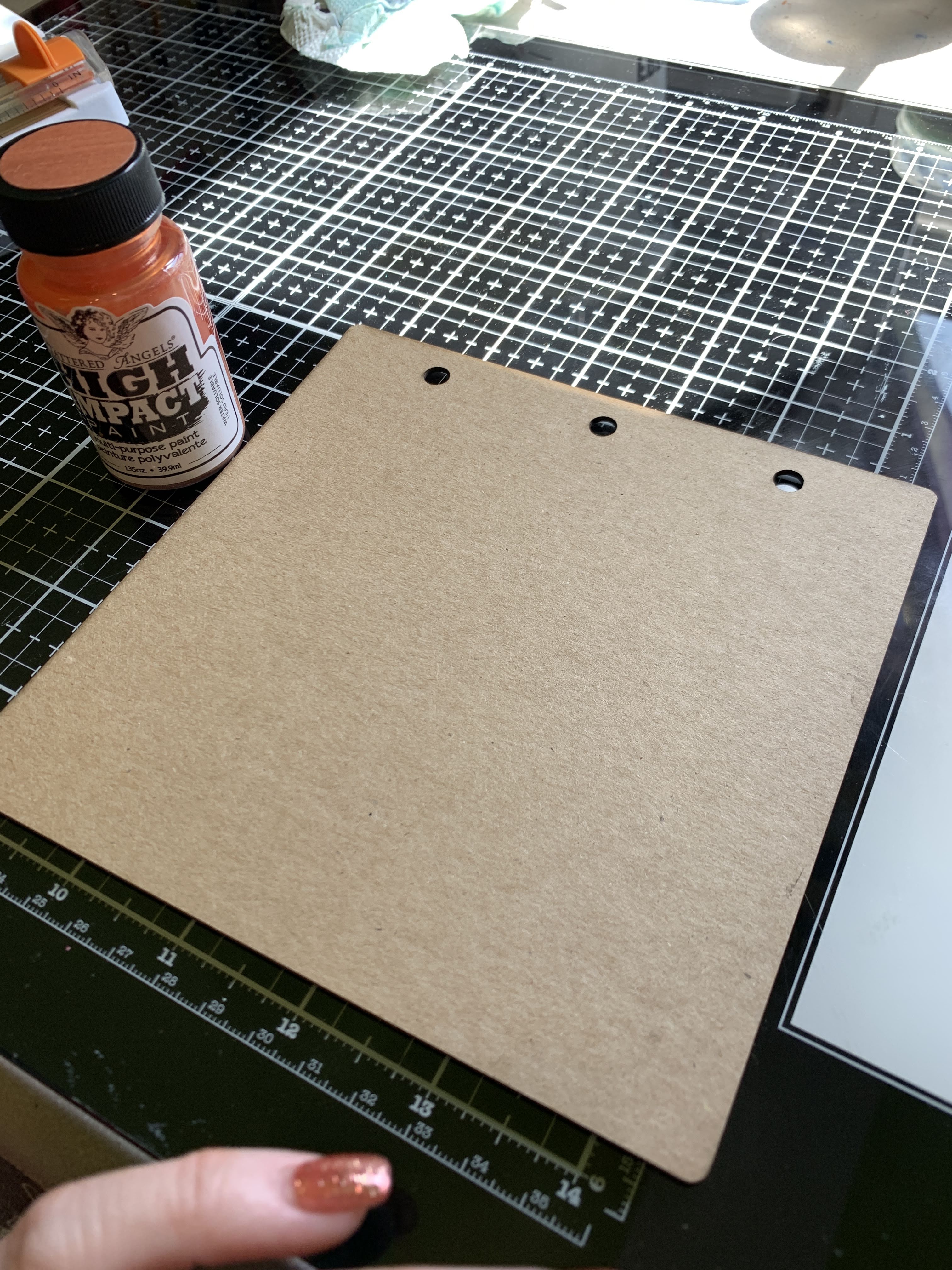 Start by painting your chipboard album piece with paint.