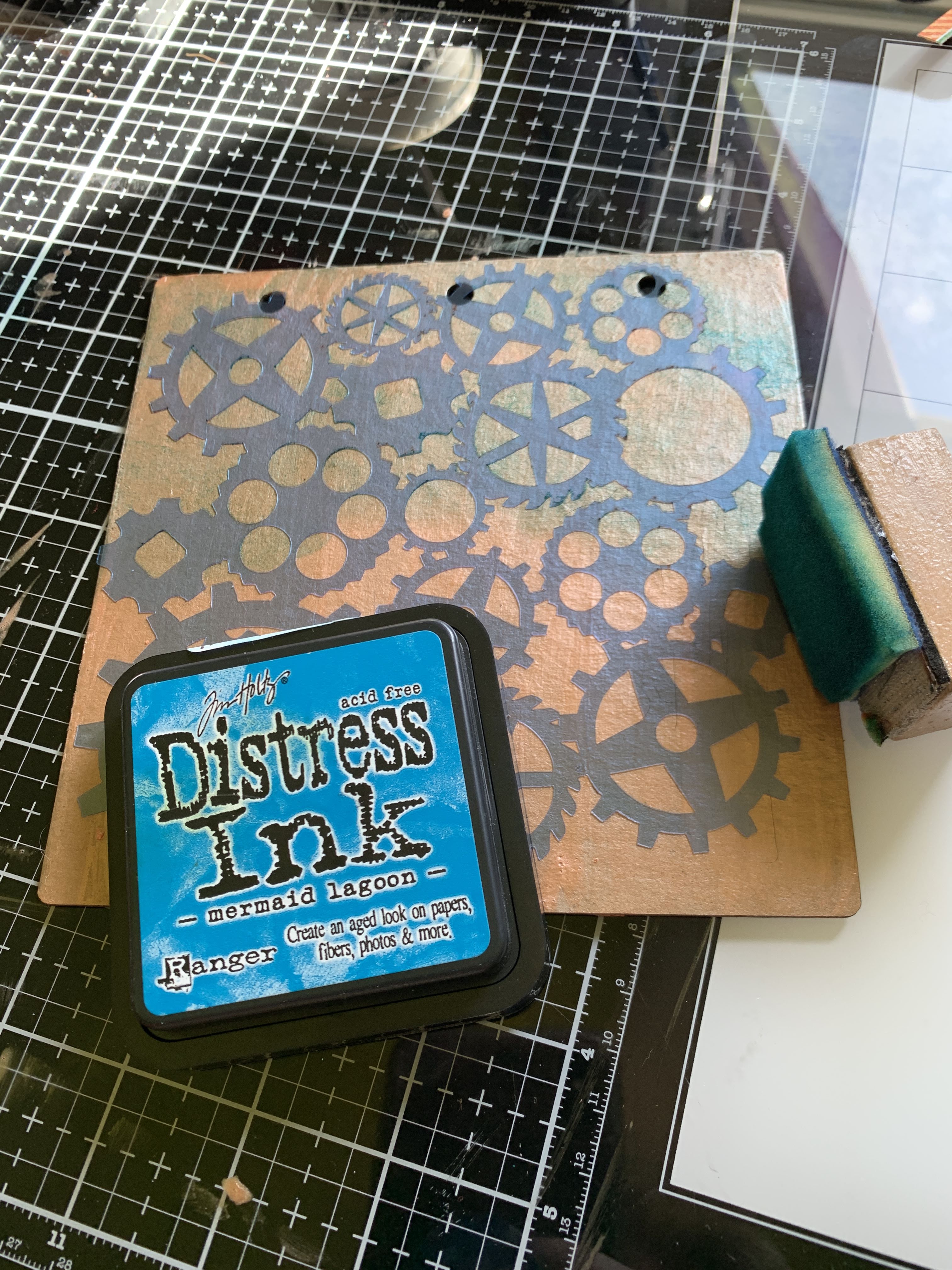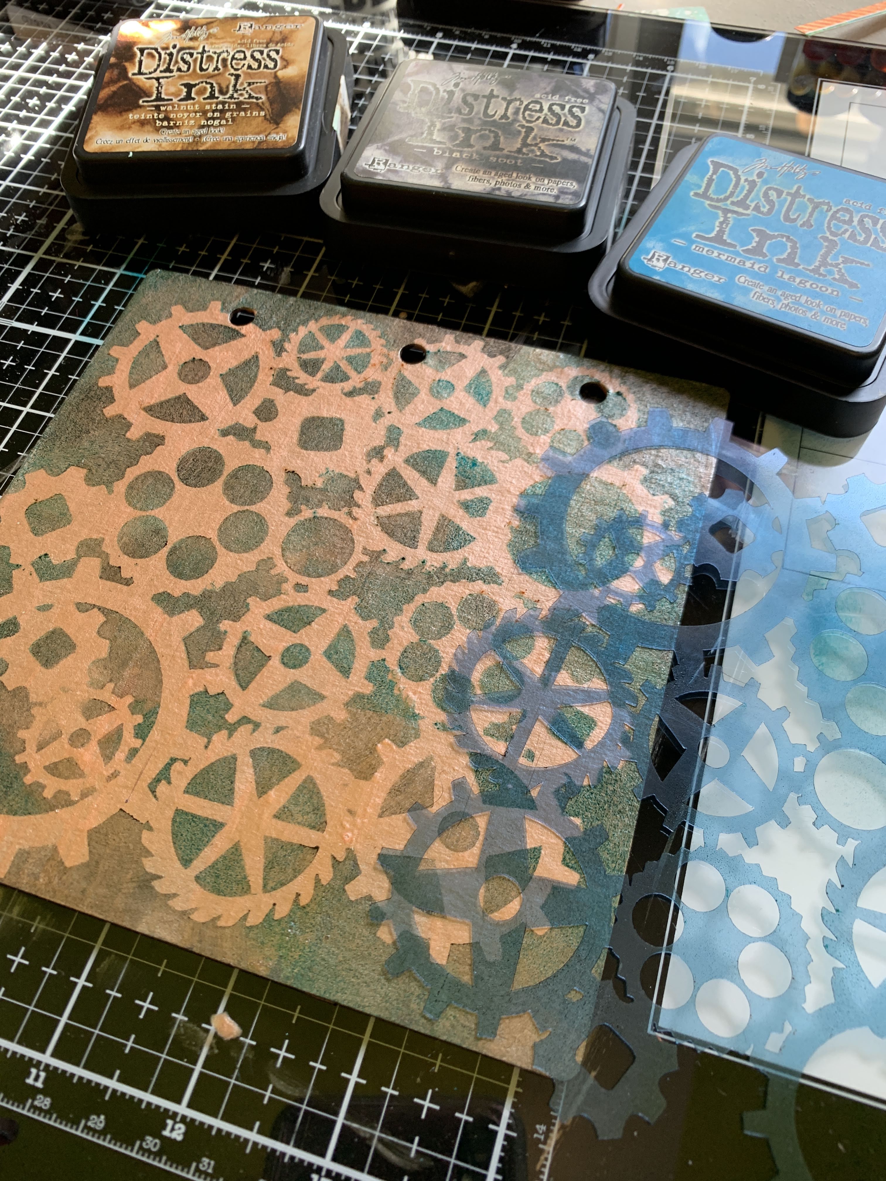 Using Distress Inks, Ink over stencil.