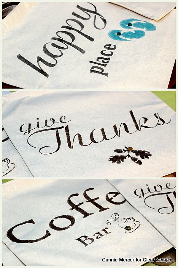 Clear Scraps: Farmhouse Stencils: Coffee Bar, Give Thanks and Happy Place.