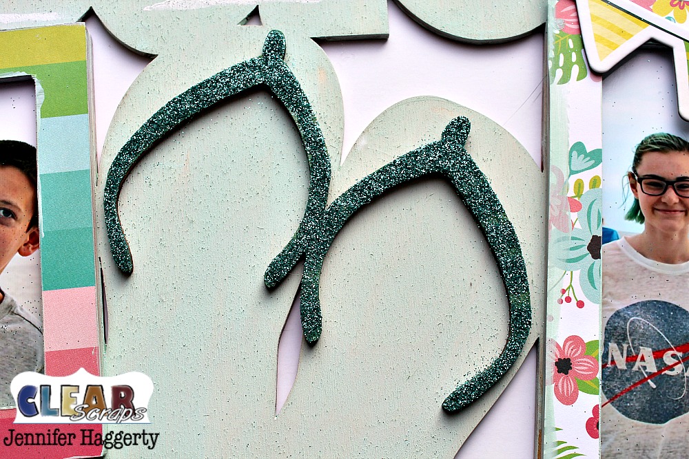 I then added Beacon Zip Dry to the top of the cut out and applied a turquoise glitter. I thought the flip flops needed some bling!
