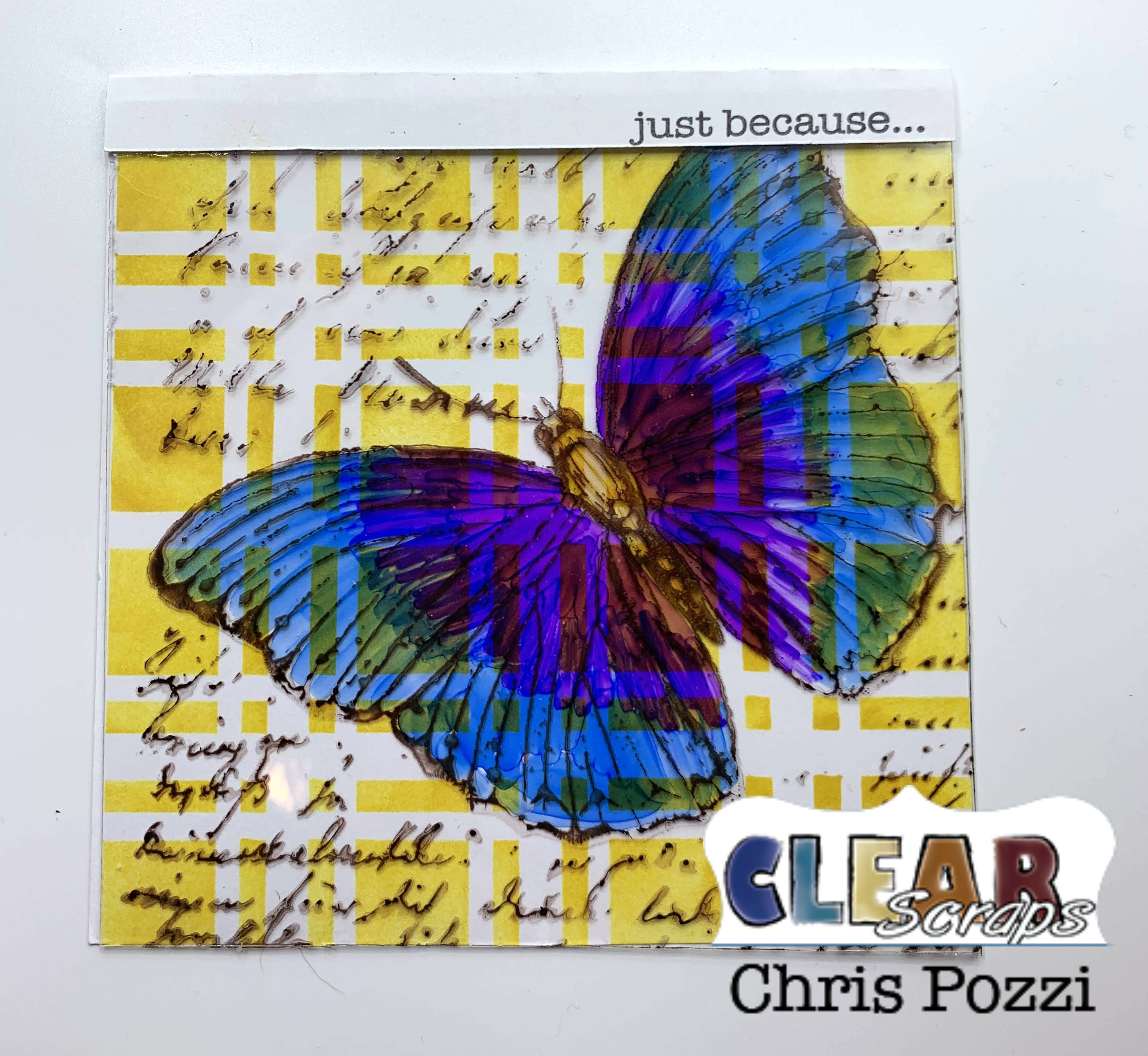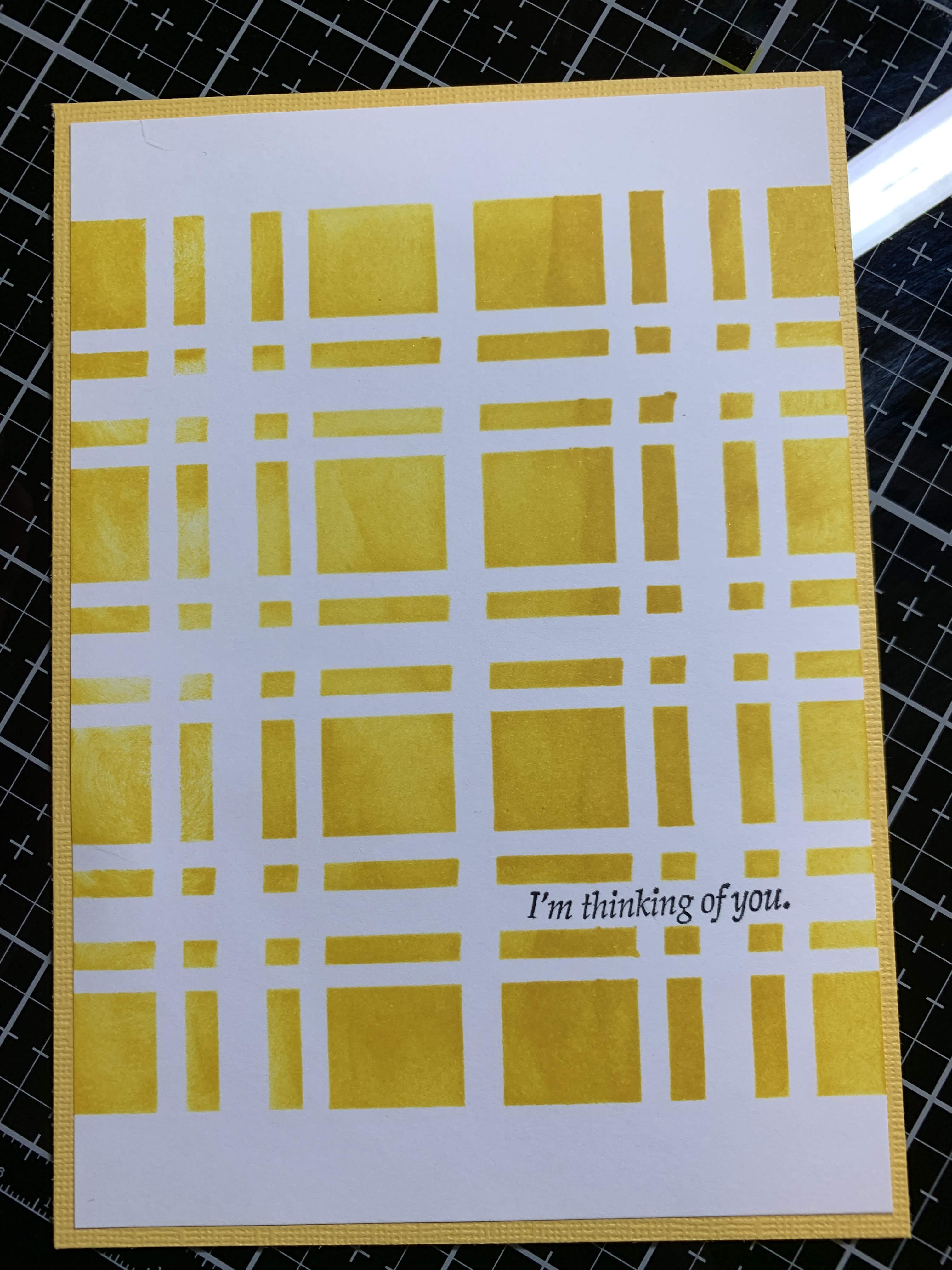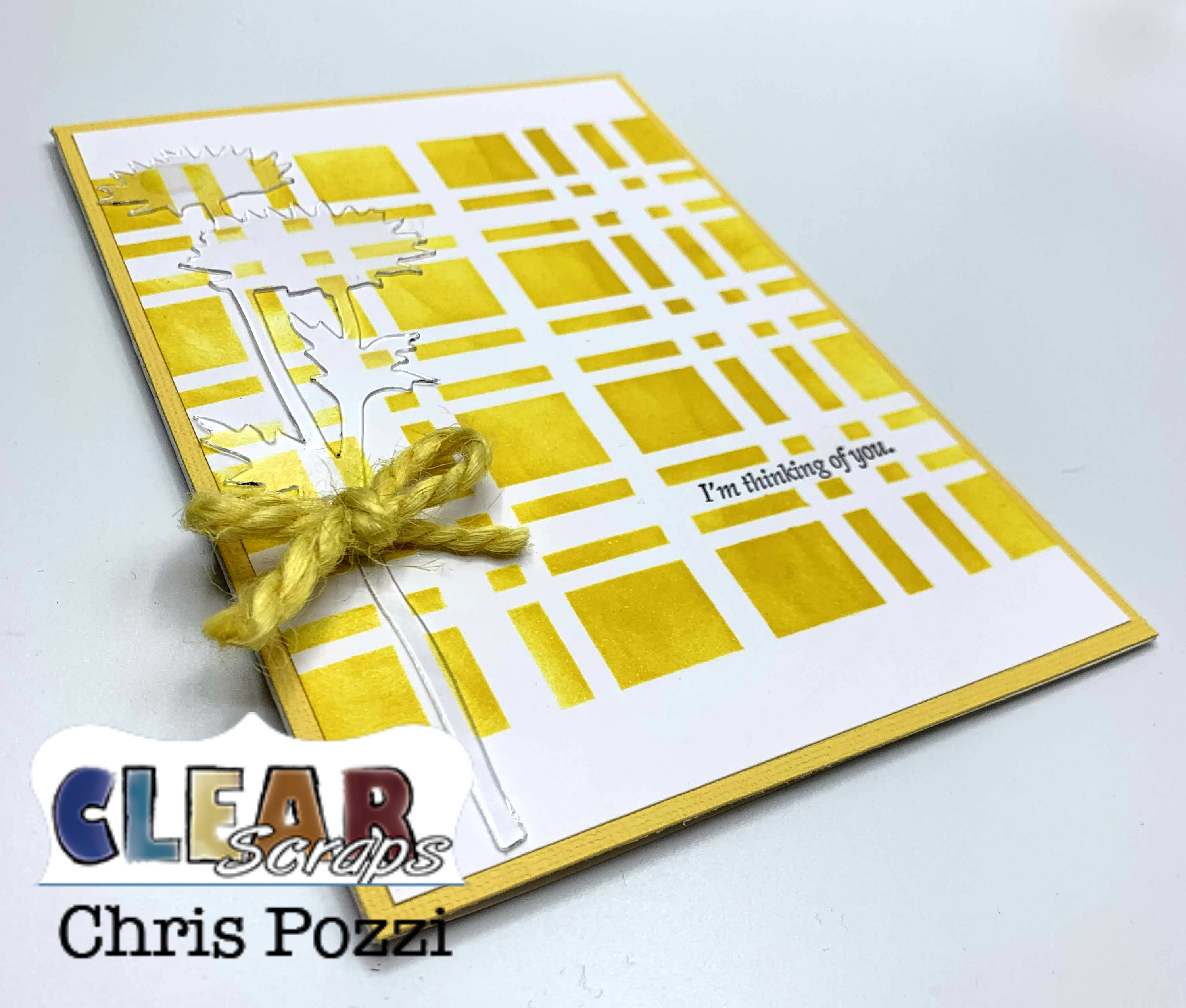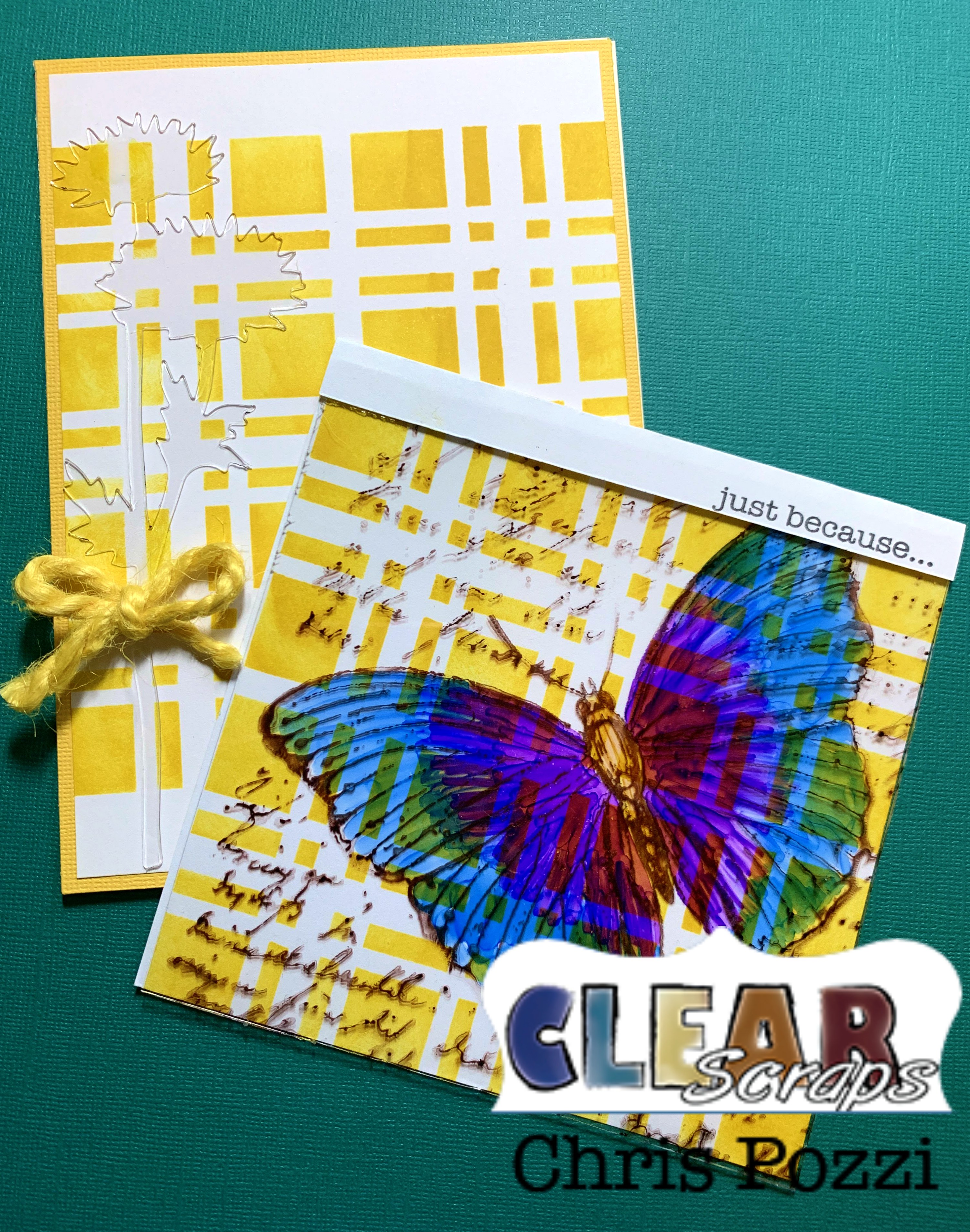 Summer Greetings! Today I am excited to share two different ways to use Clear Scraps 12 x 12 Acrylic Sheets. I love coming up with multiple uses for my supplies! I chose to use the 6 inch Plaid Stencil as a background for both cards.