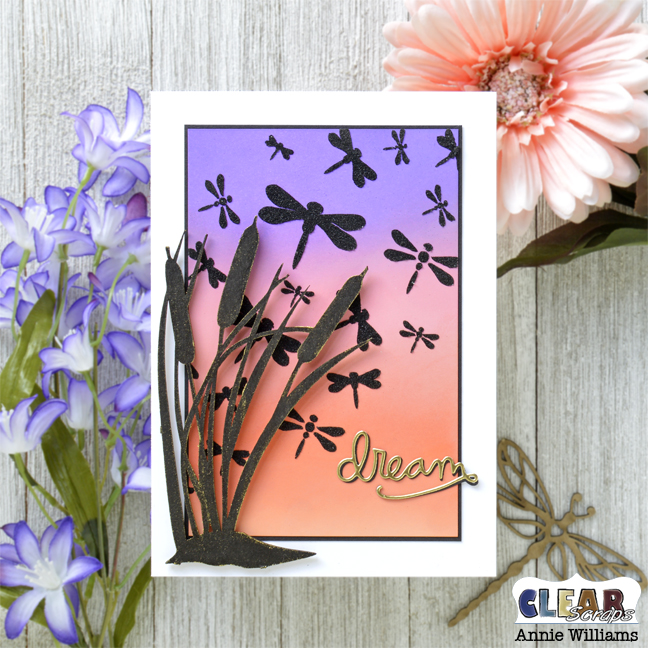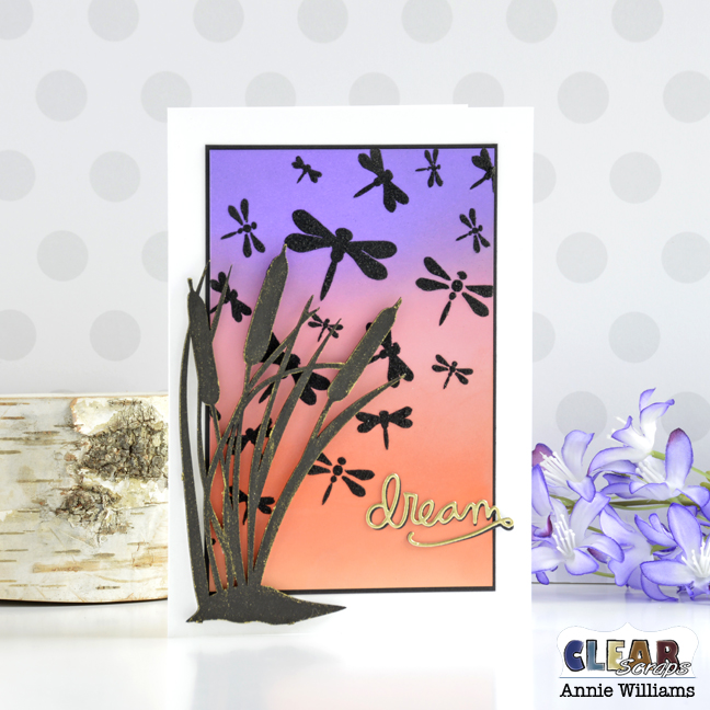 Hi everyone! It's Annie, and today I'm sharing a tutorial to make this dreamy summertime card using chipboard embellishments and stencils from Clear Scraps.
