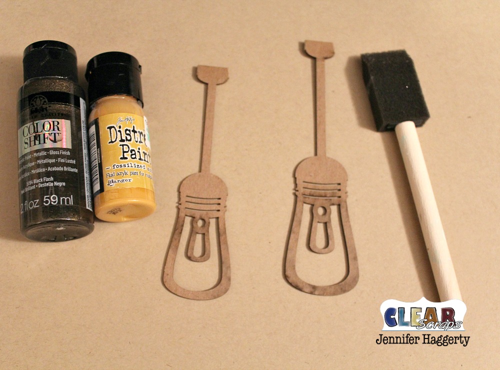 Here is the end result of the painted chipboard! I adhered them using Beacon 3-in-1 Adhesive and love how the lights look against the grey background!