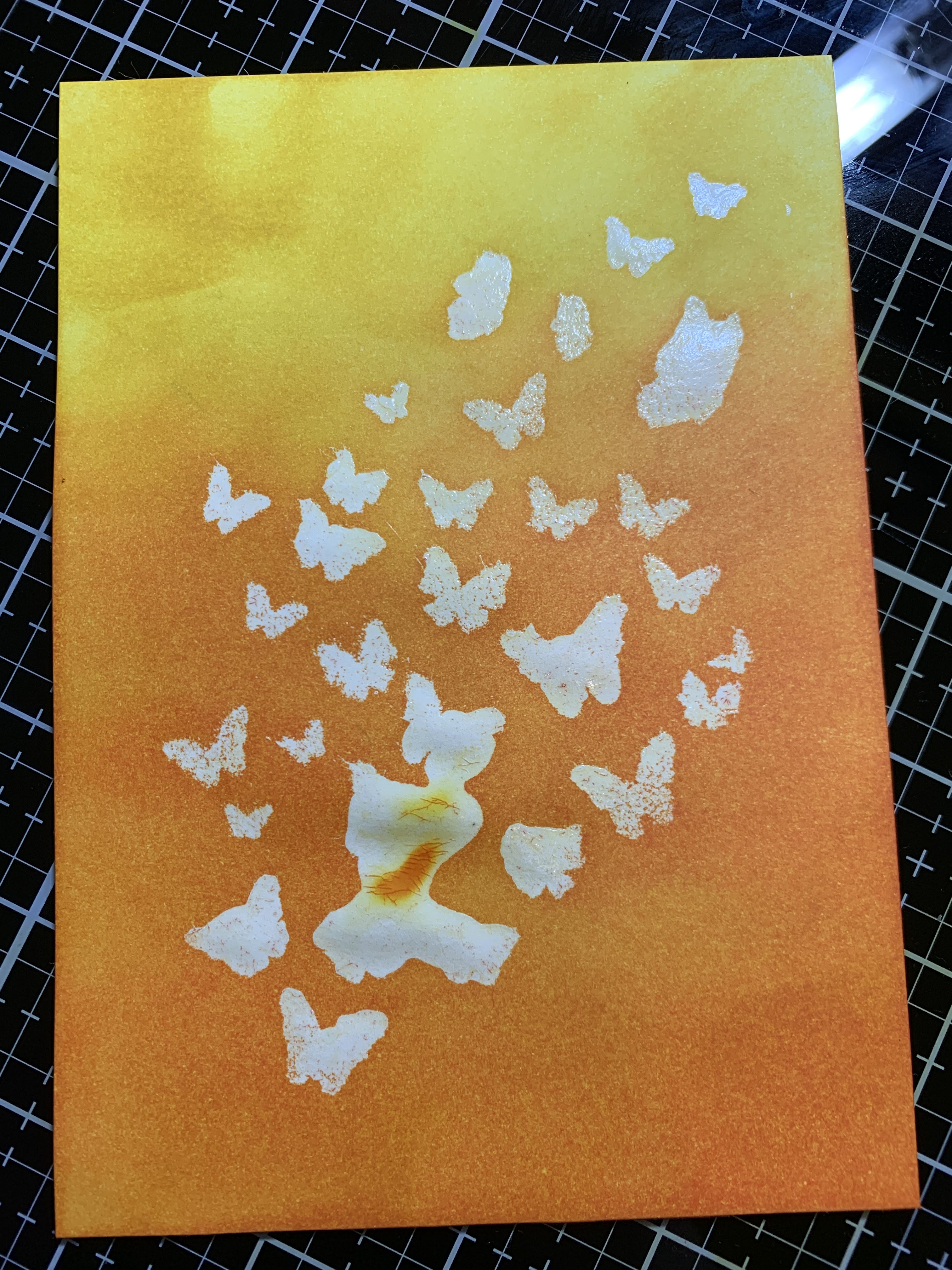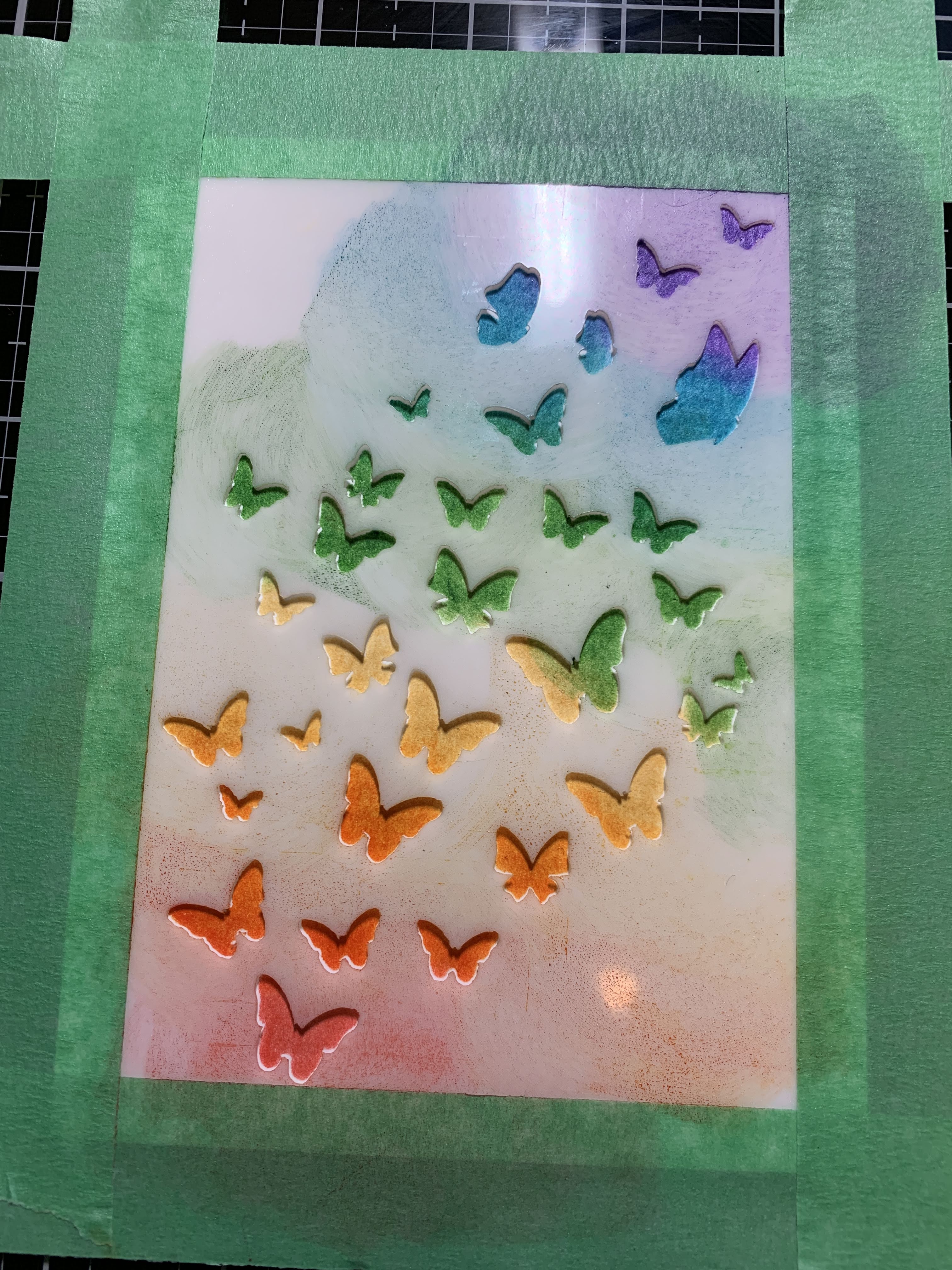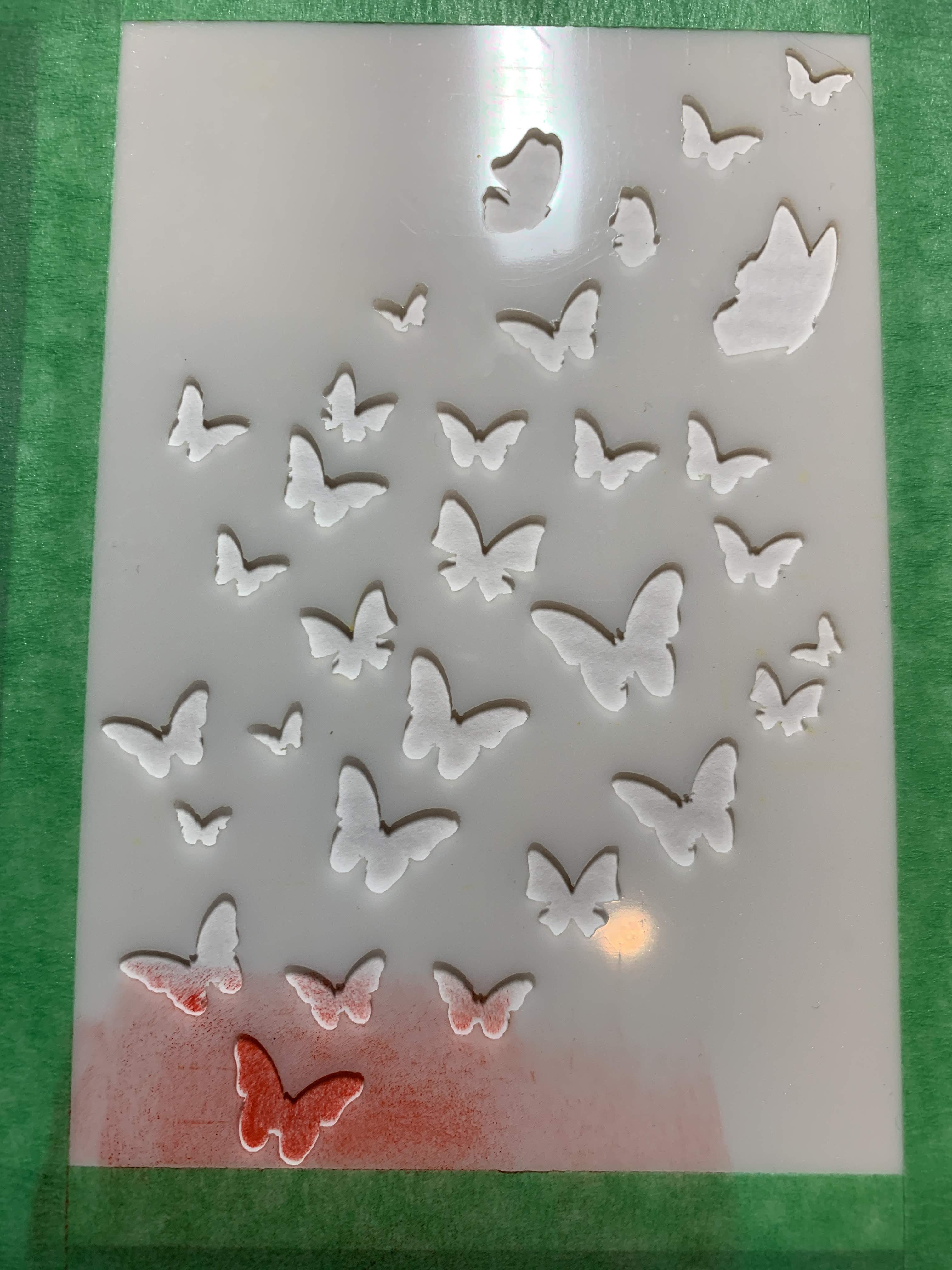 Today I am sharing two colorful cards I created using Clear Scraps 4 x 6 Butterfly Flock Stencil.