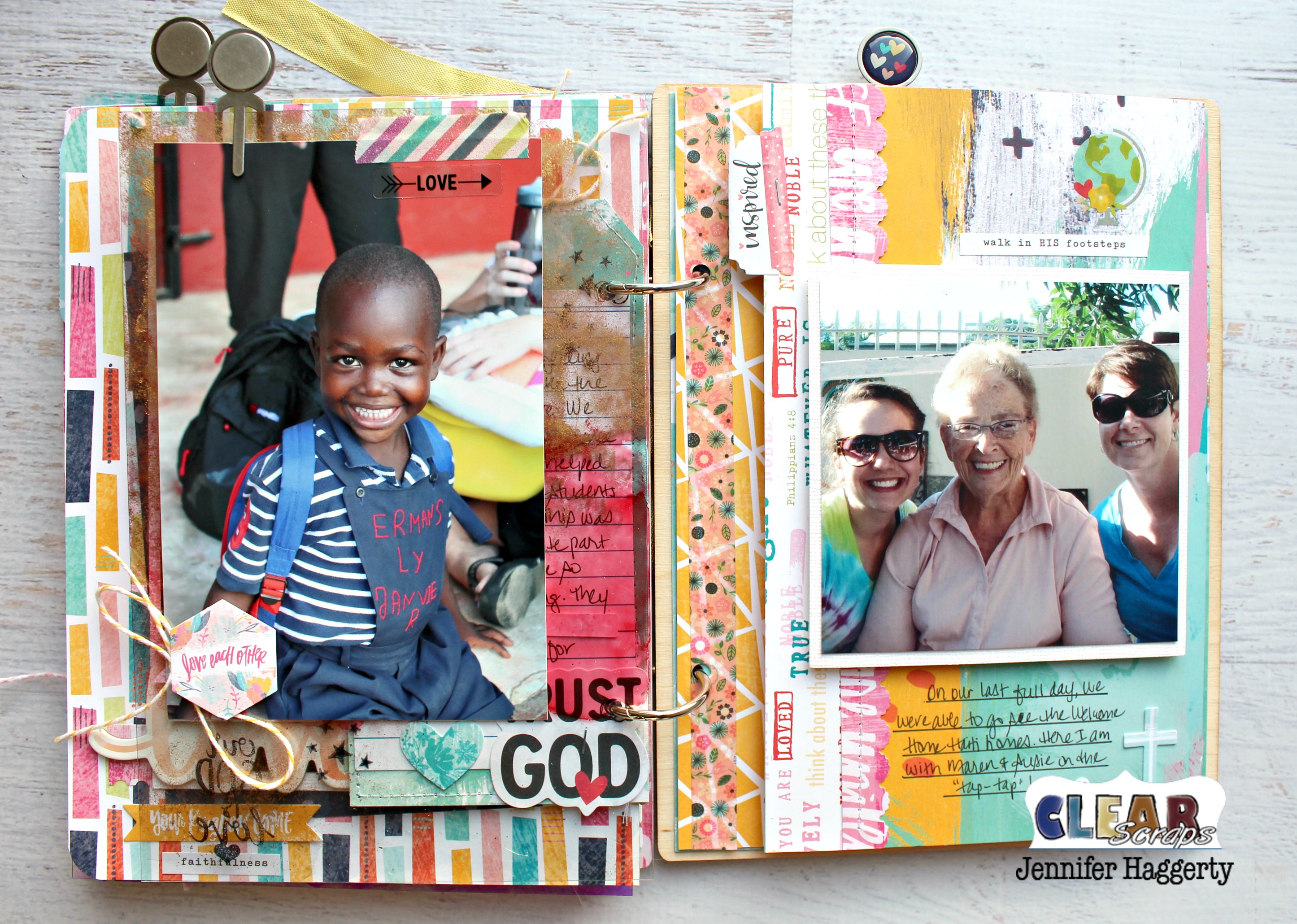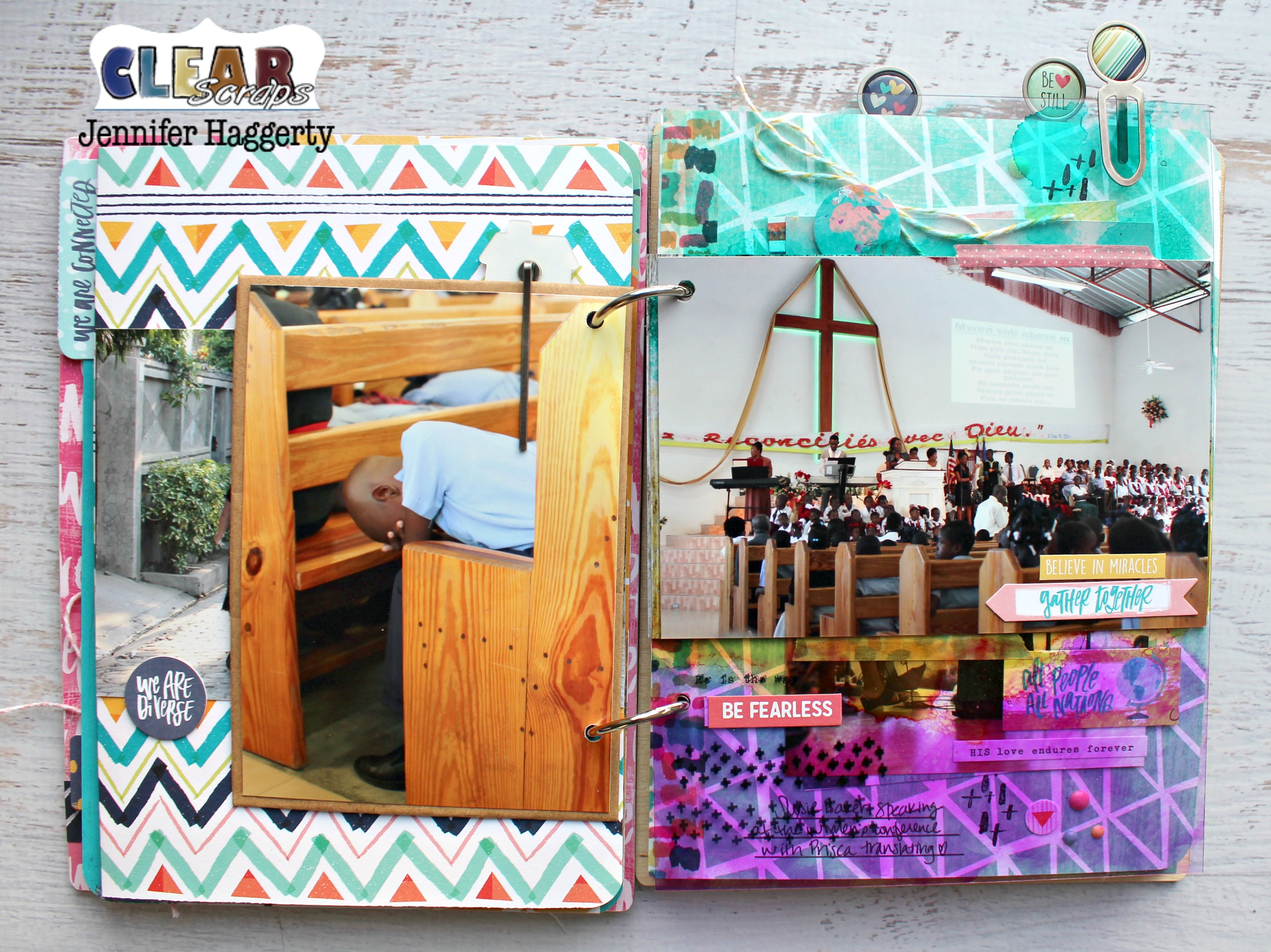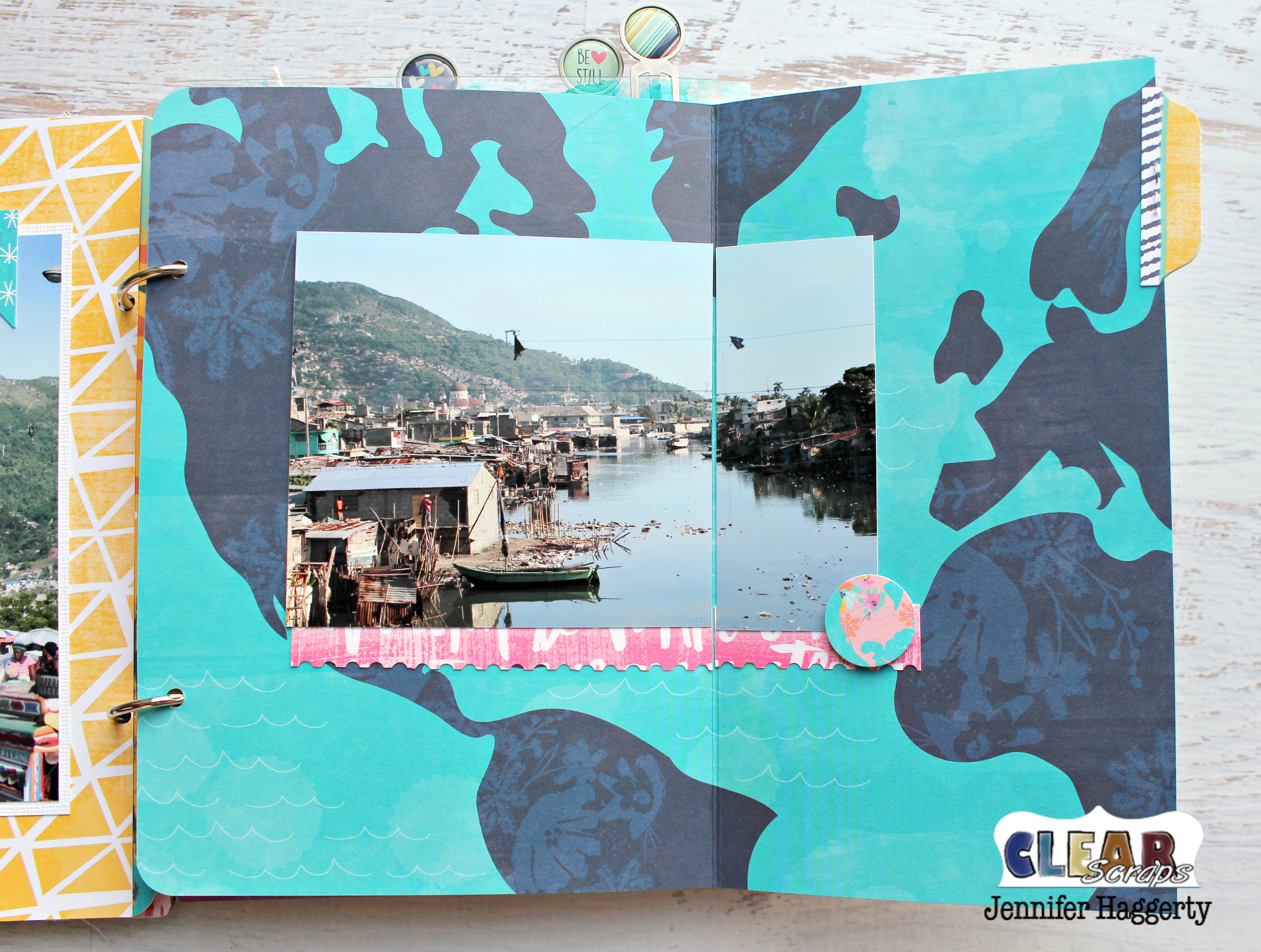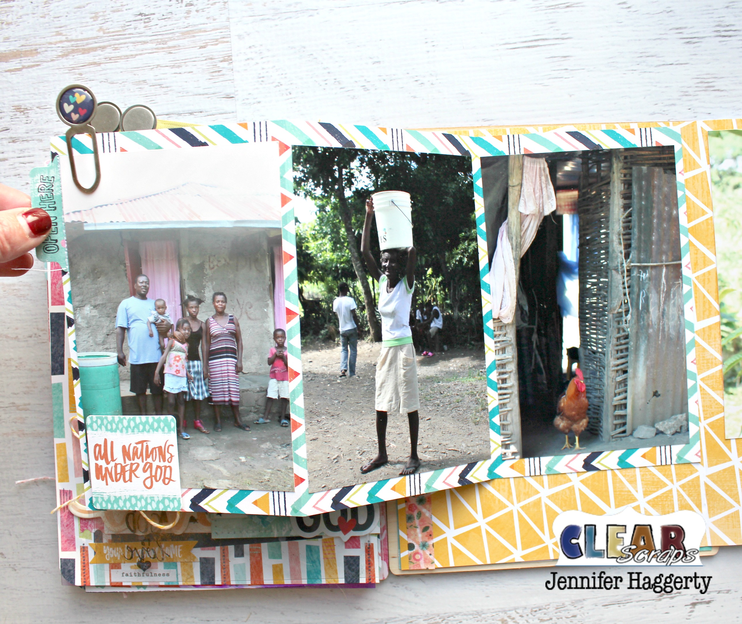 Hello and happy Friday! Jennifer here to share a mini book I created using the Blank Wood Album! These birch covers measure 6×8 and have six pre-drilled holes! You can paint, stain, or stamp the wood; or do as I did and cover with paper! One of the nice features about the Wood Albums is that you can create your own pages and insert as many as you like. I scrapped about my first mission trip to Haiti back in 2013