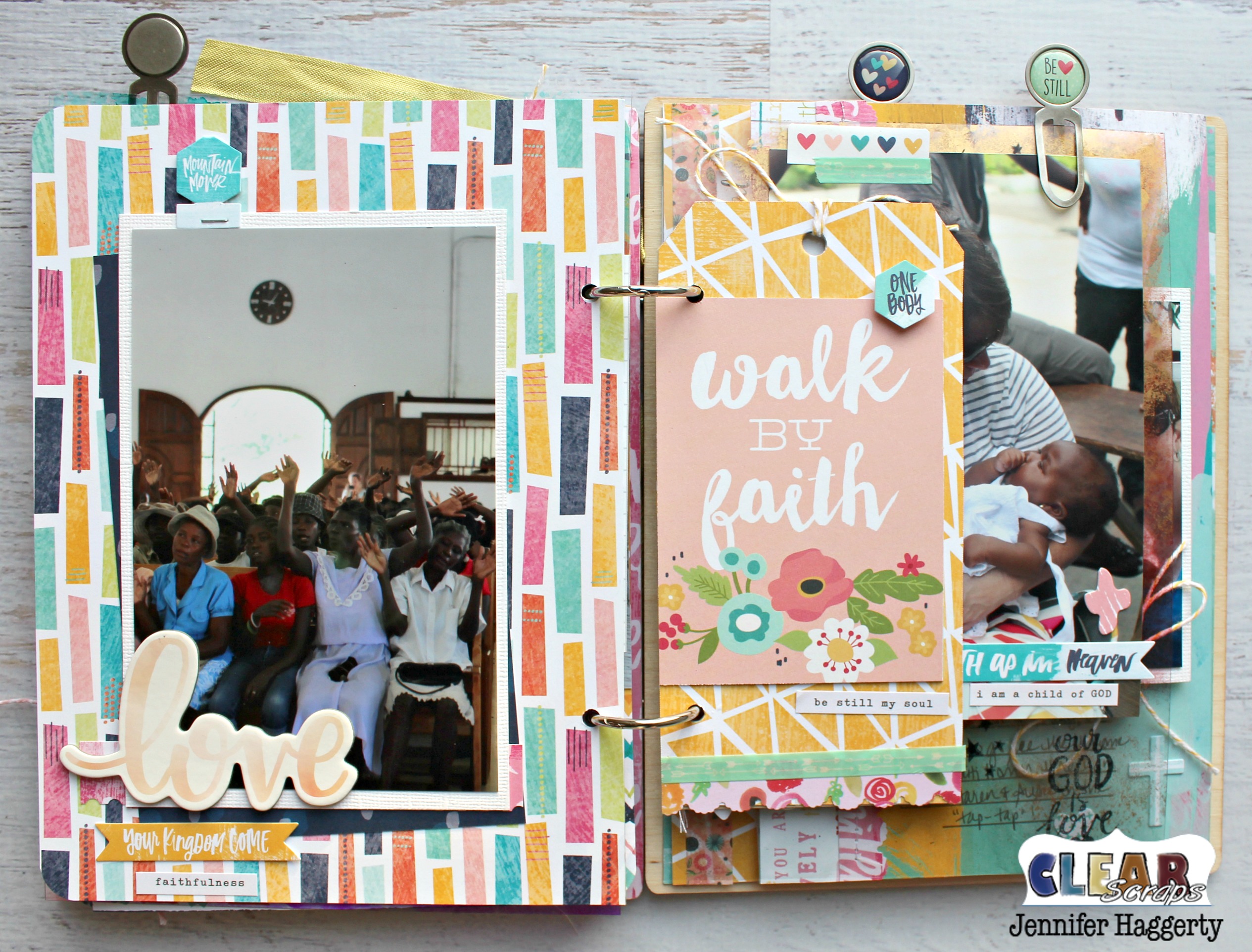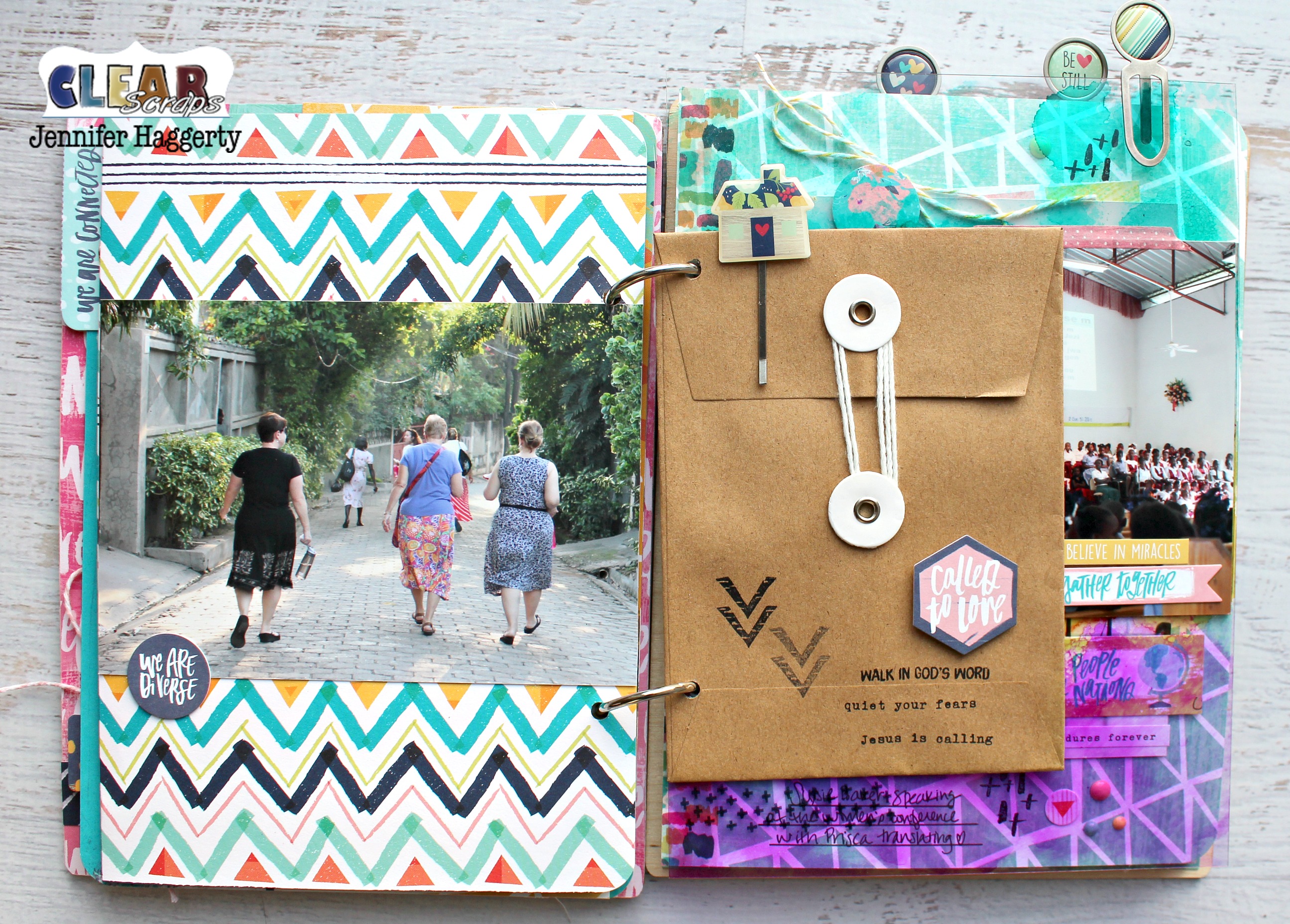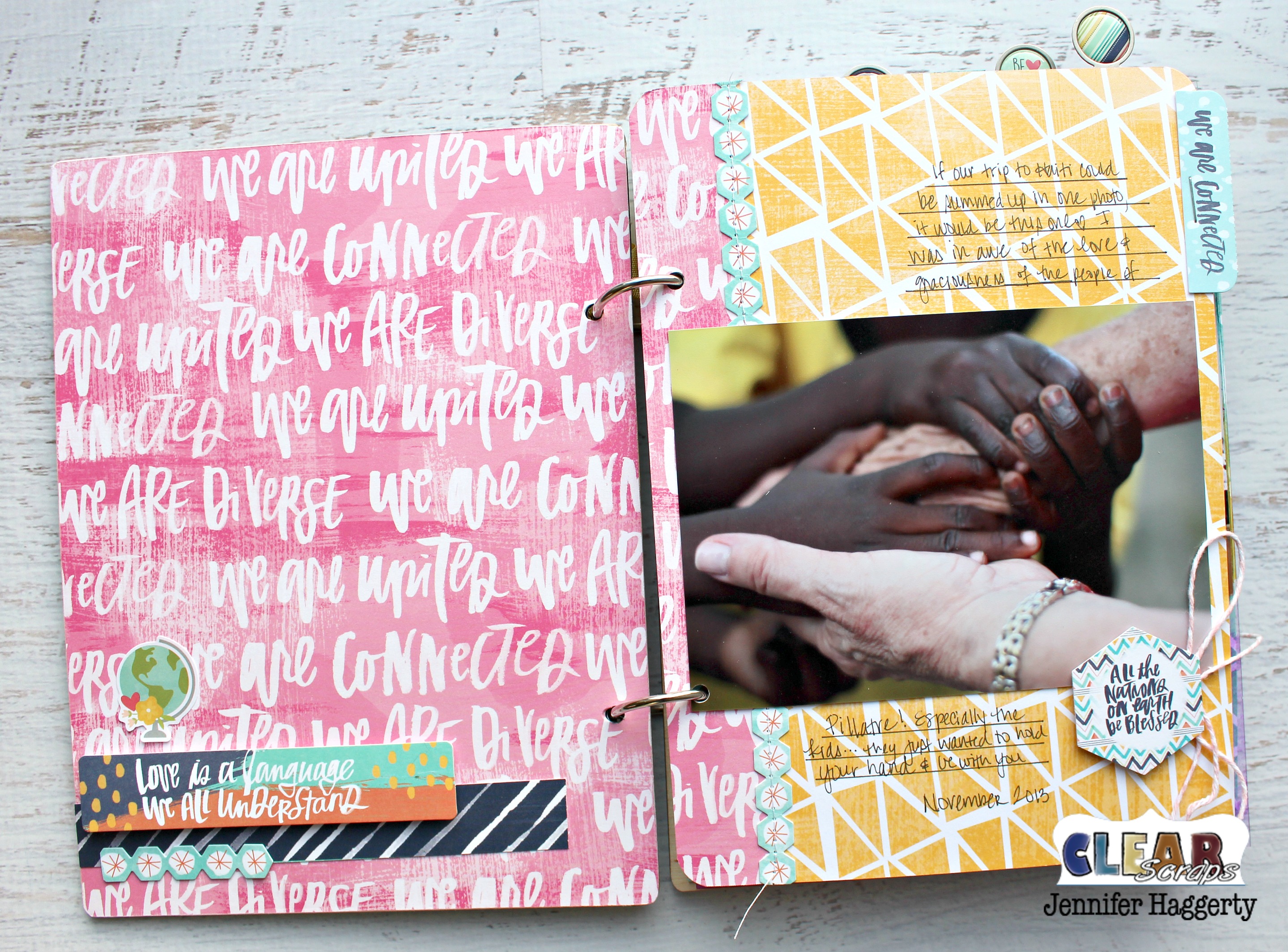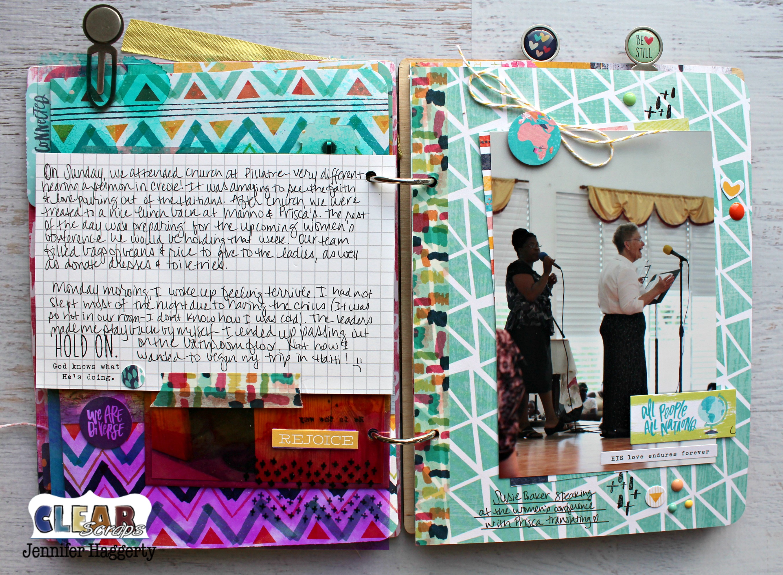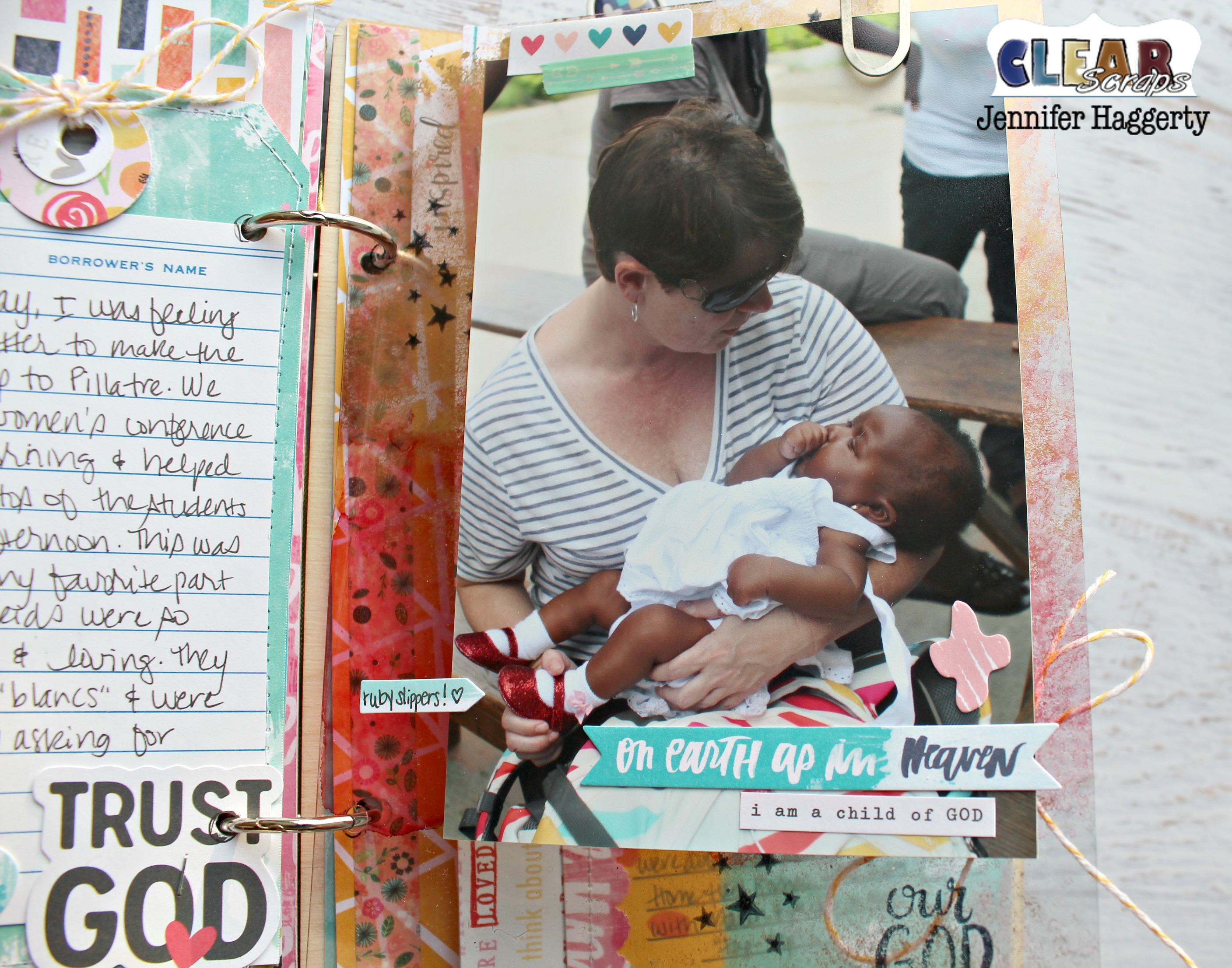 Hello and happy Friday! Jennifer here to share a mini book I created using the Blank Wood Album! These birch covers measure 6×8 and have six pre-drilled holes! You can paint, stain, or stamp the wood; or do as I did and cover with paper! One of the nice features about the Wood Albums is that you can create your own pages and insert as many as you like. I scrapped about my first mission trip to Haiti back in 2013