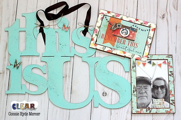 Hi, Connie here with the "This Is Us" Wood Frame by Clear Scraps and it is all decorated and ready for that special place in our home. I created with acrylic paint and paper, couldn't have been easier.