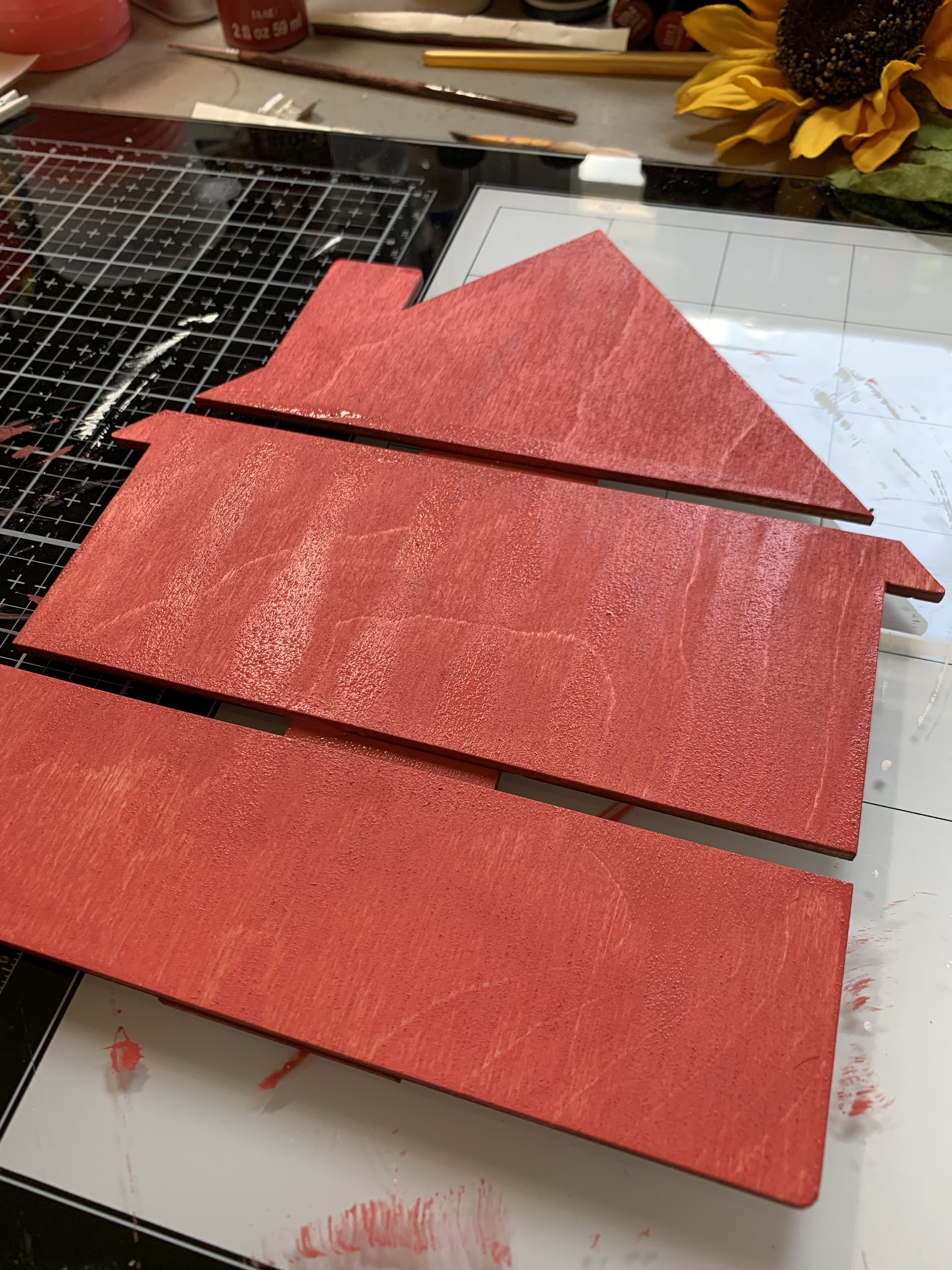 Paint the House Medium DIY Pallet Shape with acrylic paint that has been diluted slightly with water to create a color wash effect.