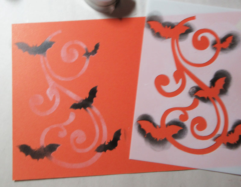 Using the new 4 x 6 Bat Swirl Stencil, I created 3 different cards.