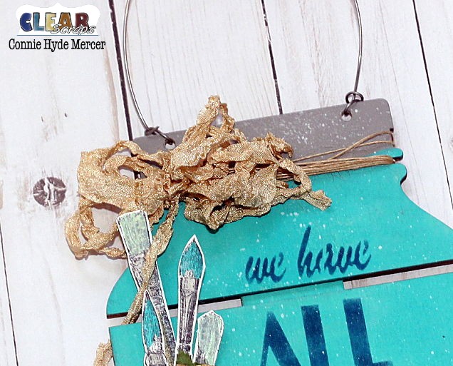 Hi, Connie here with pallet art using the Med. Mason Jar pallet and one of the newly released 4×6 stencils called All Created by Clear Scraps.