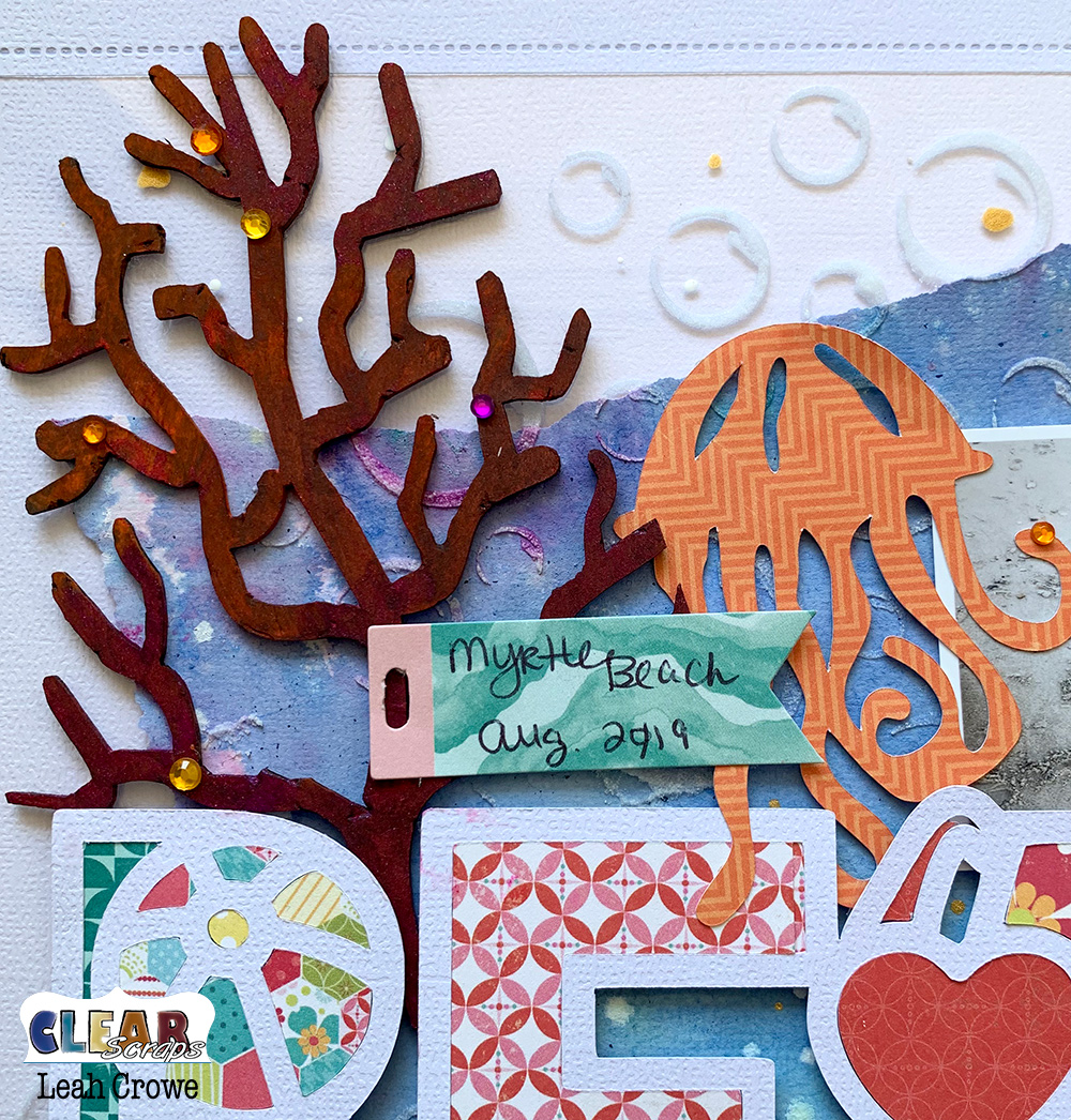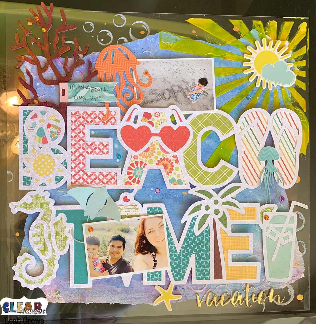 Hello, friends! Leah here with you today sharing another layout this month. My daughter recently went to the beach so I have a lot of fun photos to play with! These two are my favorites from her trip, and I knew Clear Scraps products would be the perfect way to show them off.