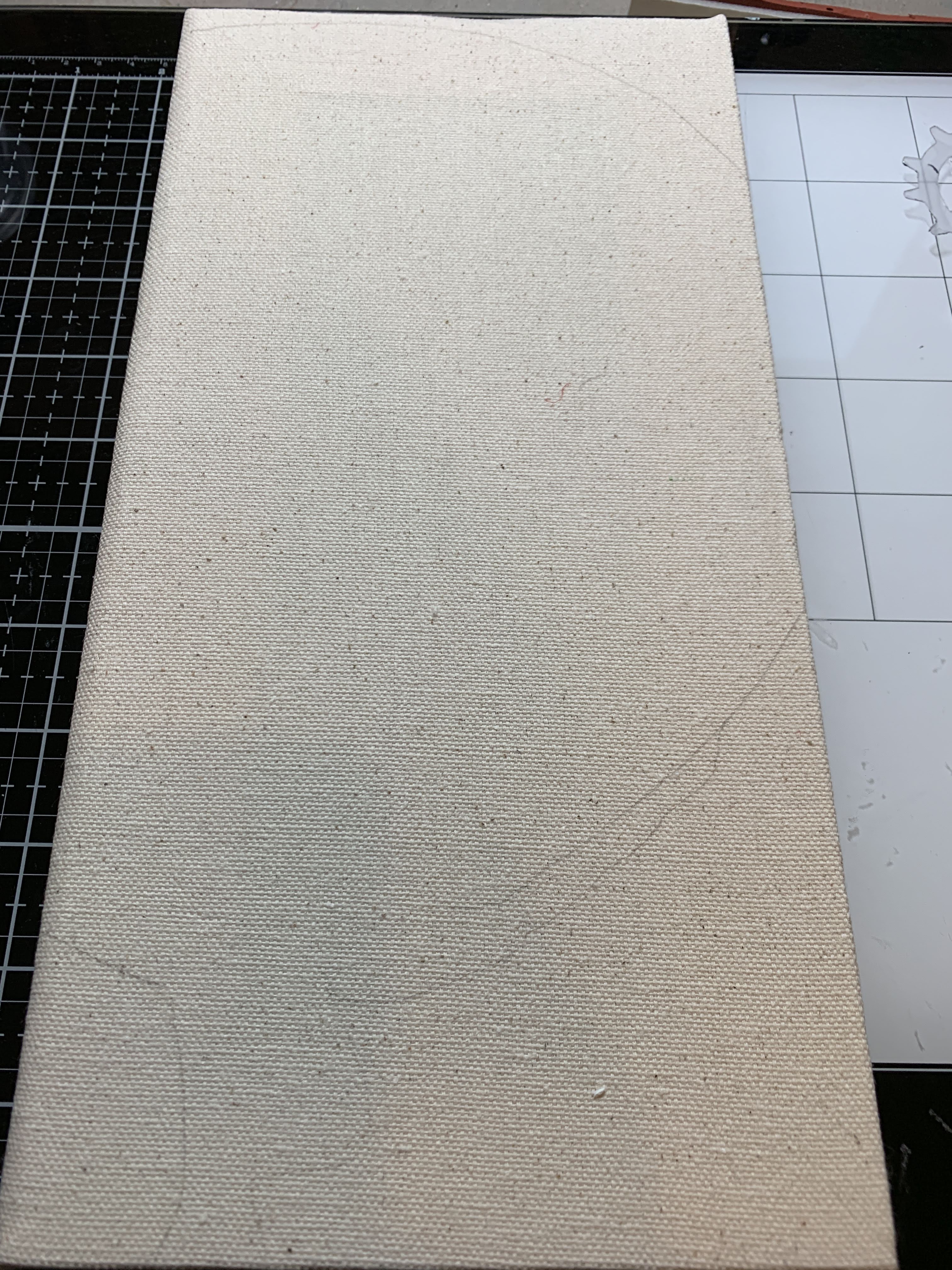 Start by cutting your image and lay over blank canvas. Use a pencil to mark your image location.