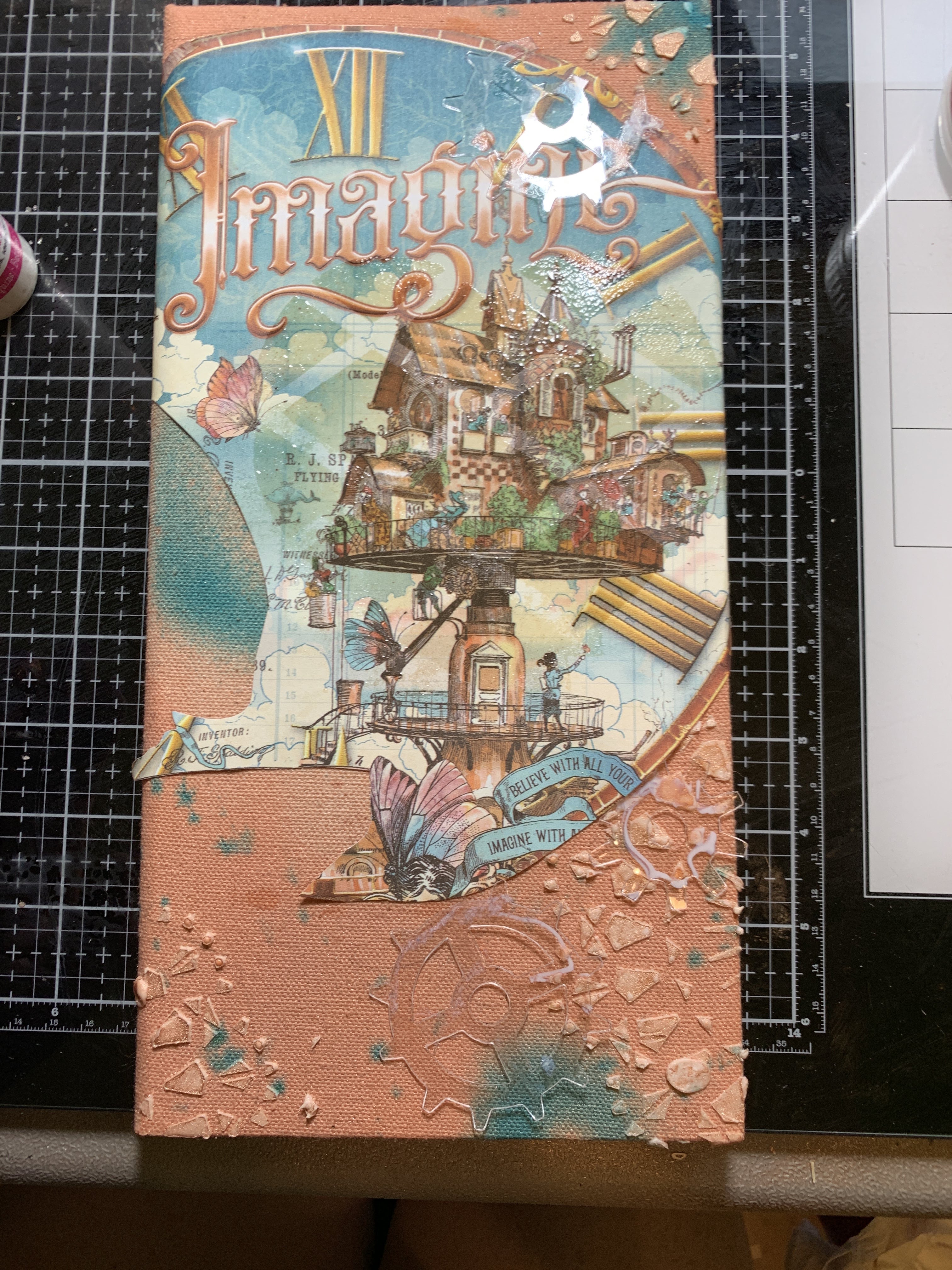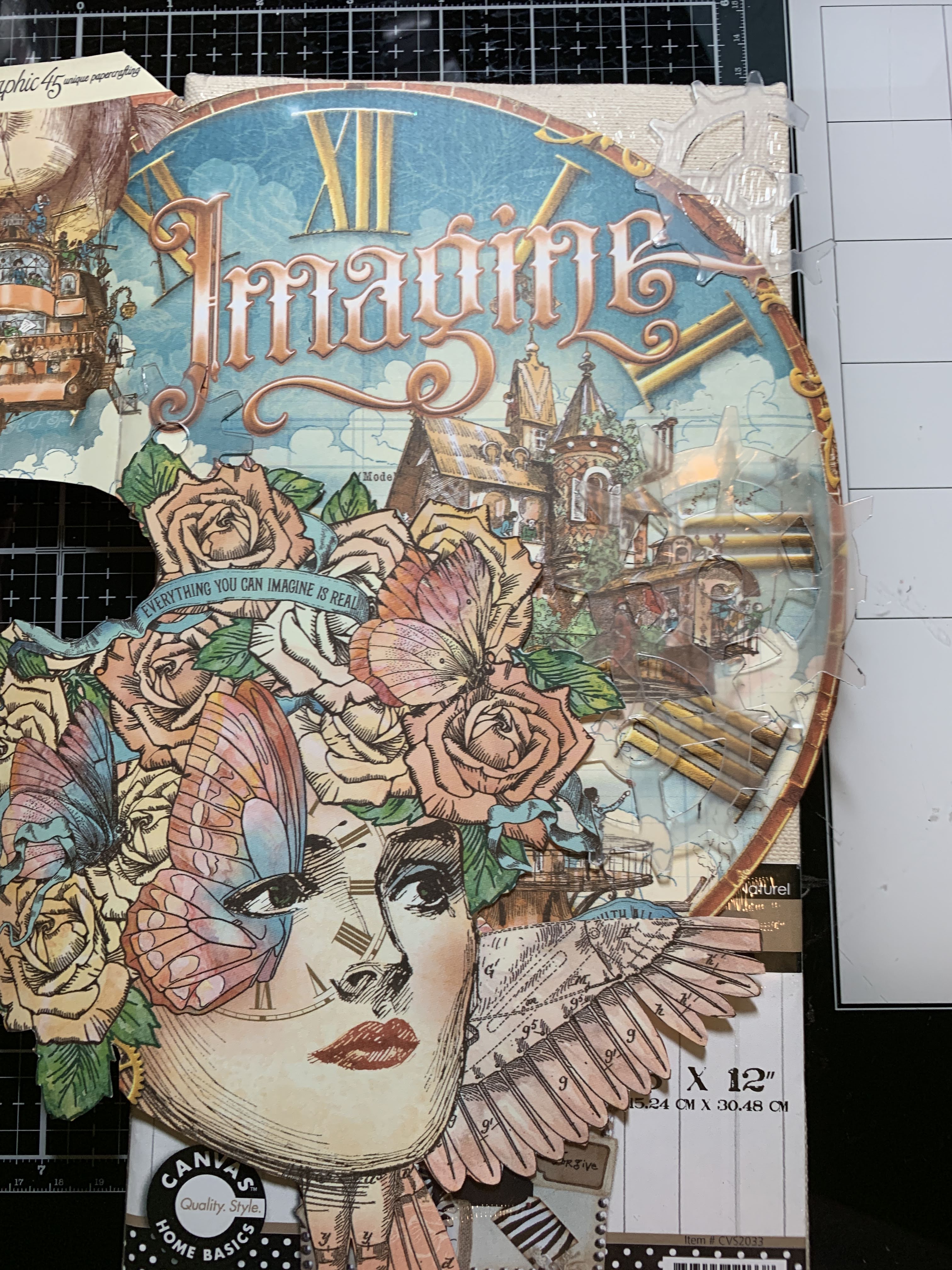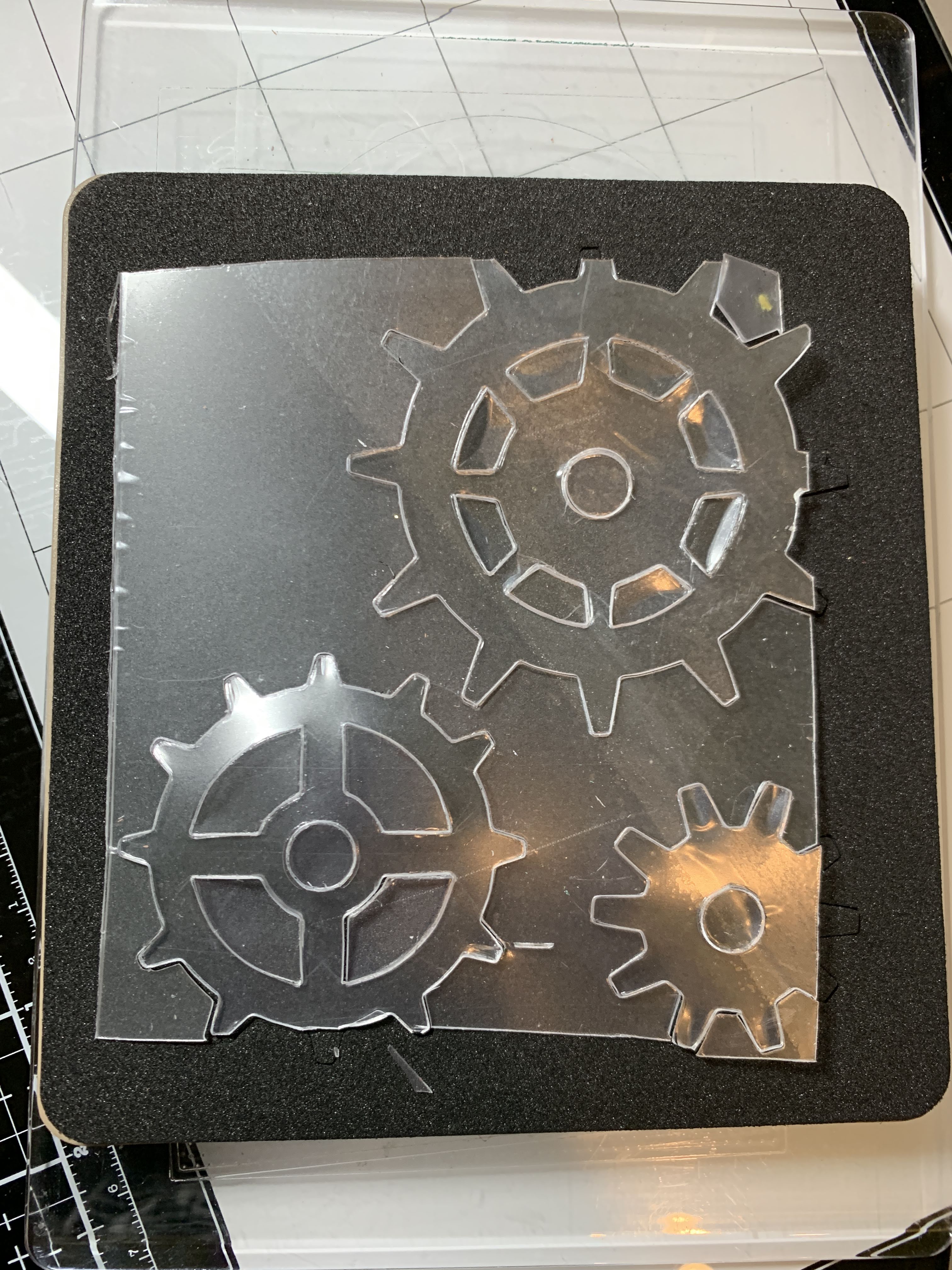 Die Cut Clear Scraps Clear Acrylic Sheets and add to canvas.