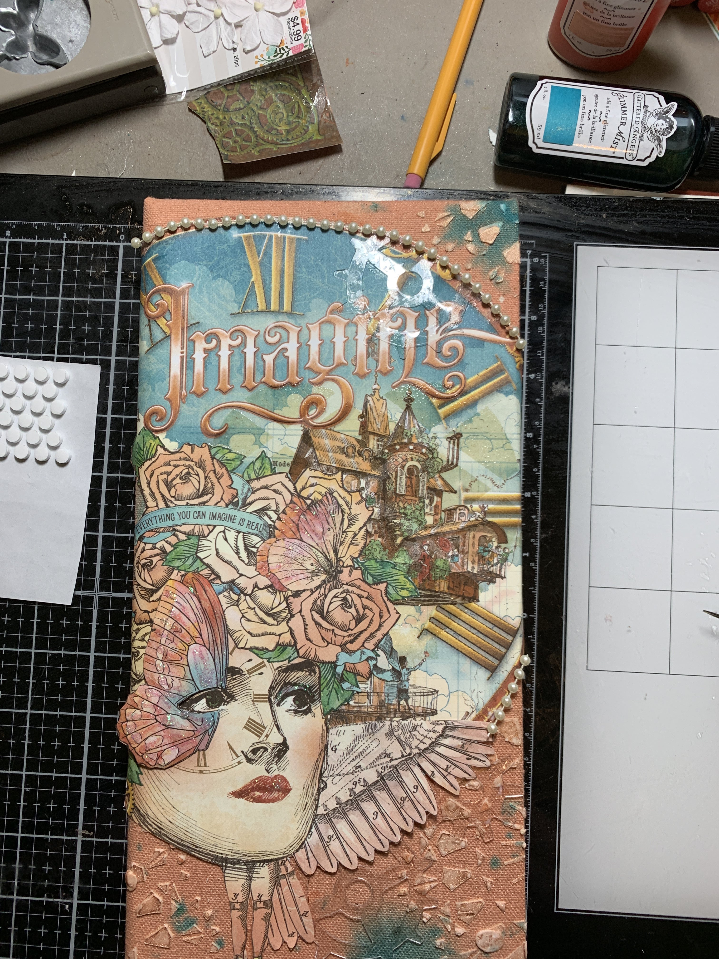 Add Face image, pearls, and stickles as desired to finish.