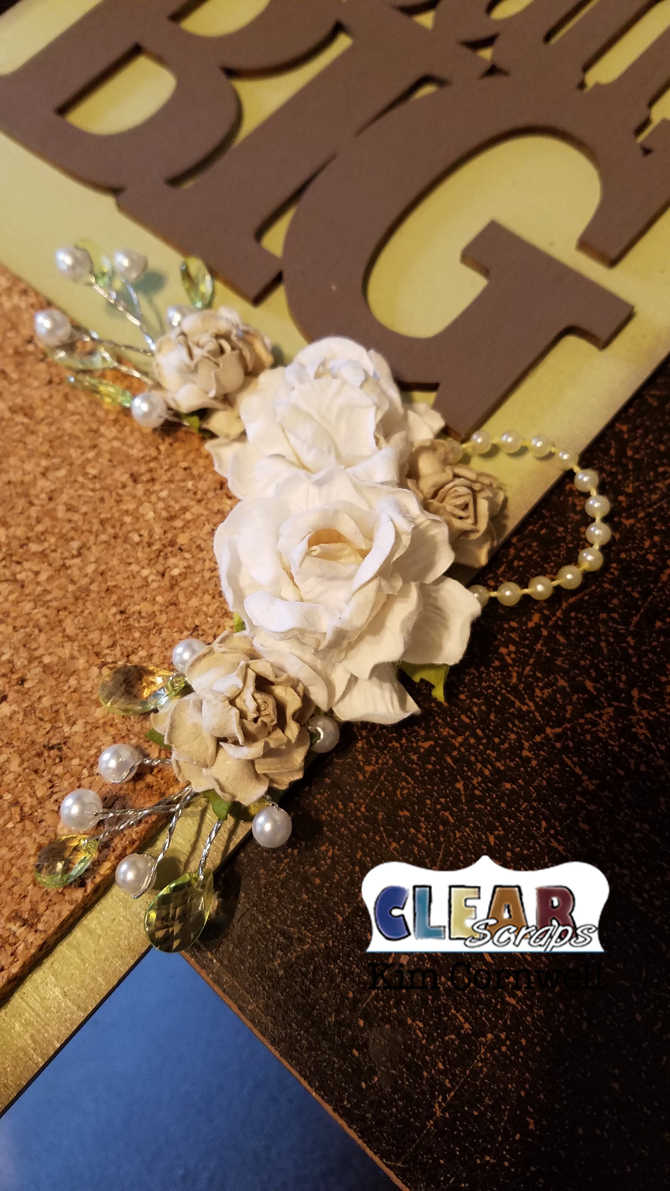 I embellished it with some brads, flowers, crystal stems, and pearls from my stash.