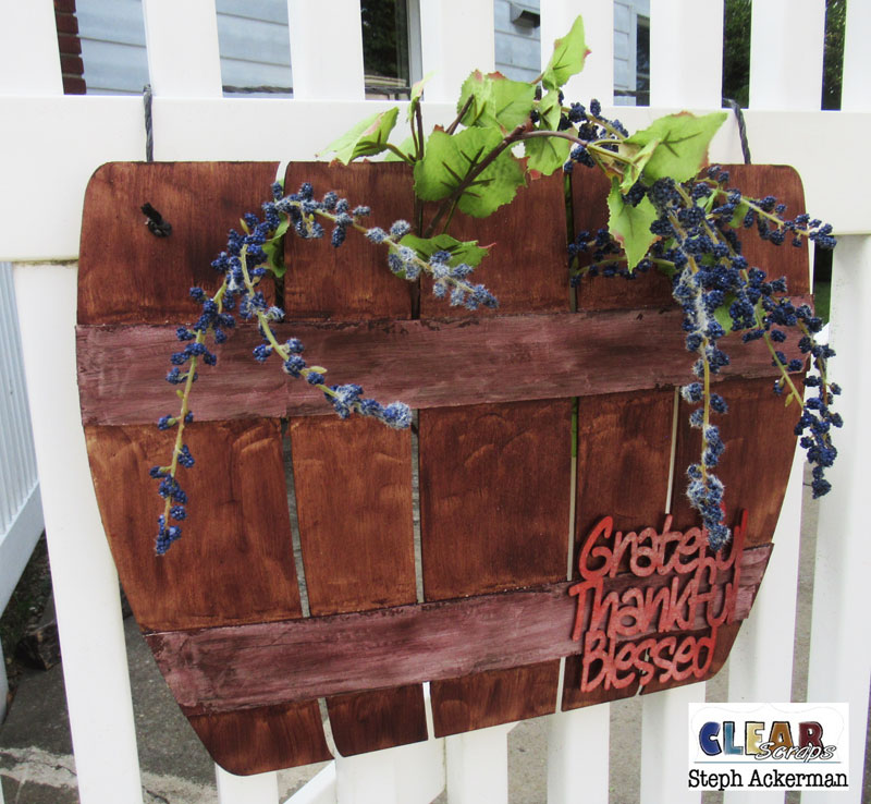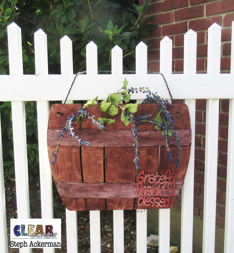 Hi everyone, Steph Ackerman here using the Whiskey Barrel DIY Pallet Shape and the Grateful XL Script Wood Quote.