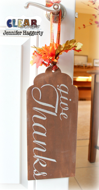 Hello and happy Monday! It's Jennifer here to share one of the new Clear Scraps products released this past summer! I love all of the wood home decor pieces especially this time of year! I used the Jumbo Scallop Wood Tag to create this fun, fall door hanger. And I'm going to show you the techniques I used!