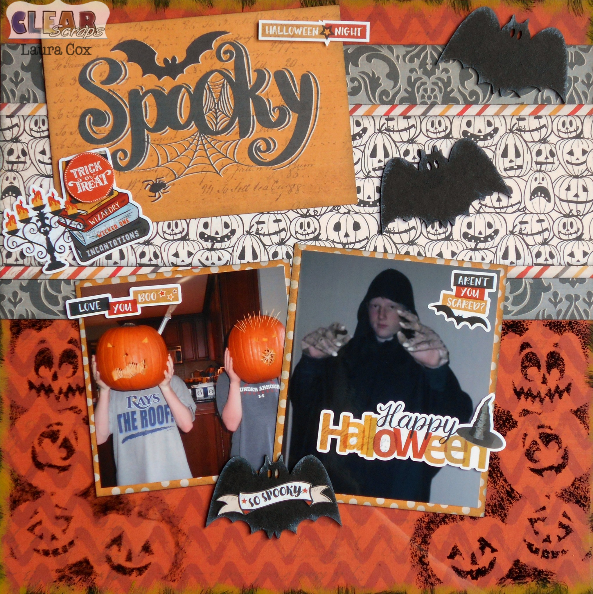 Super spooky cuteness on the finished page! Love the chipboard