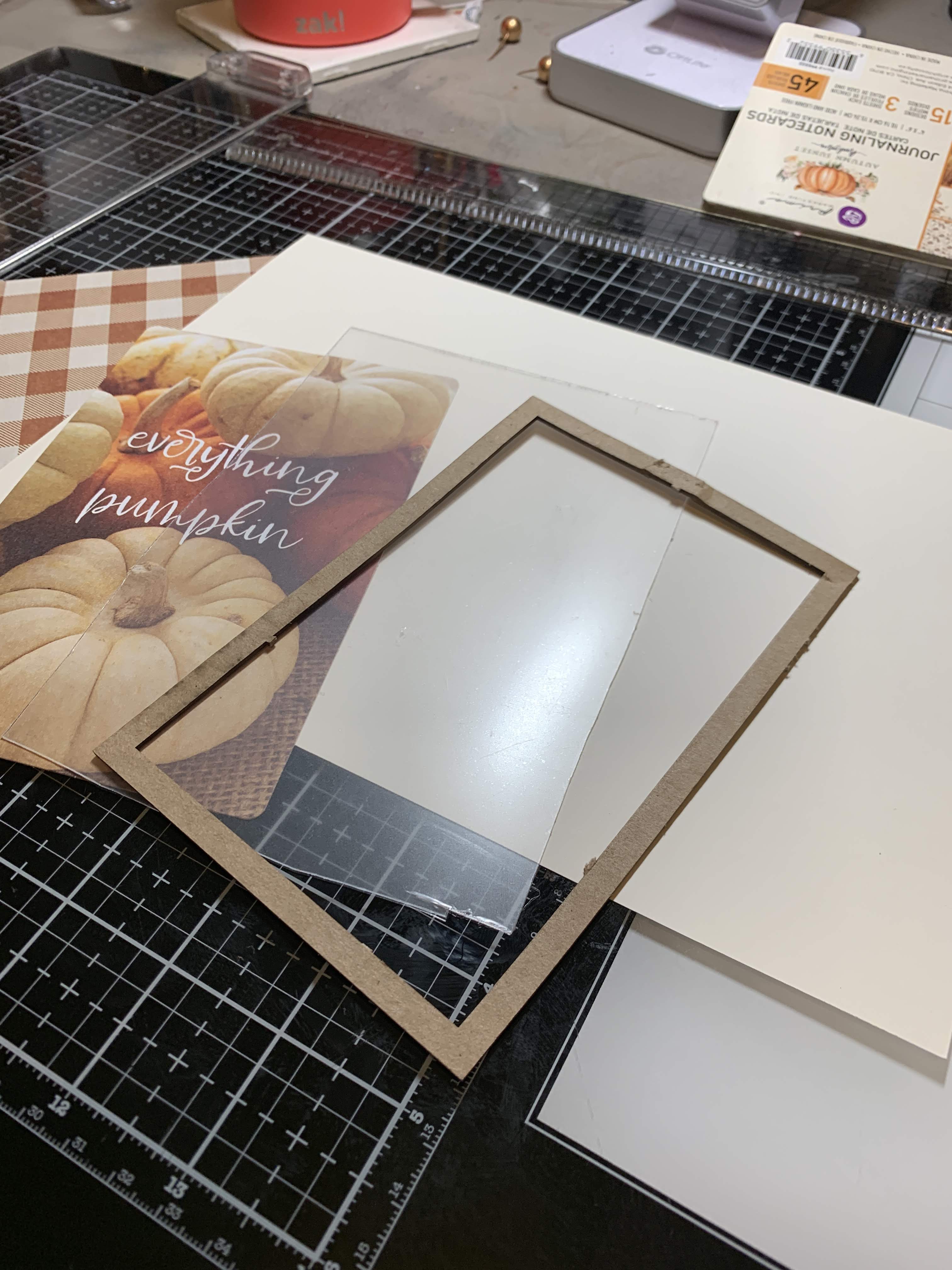 Add Misted frame to the front of the Acrylic Sheet to frame notecard.