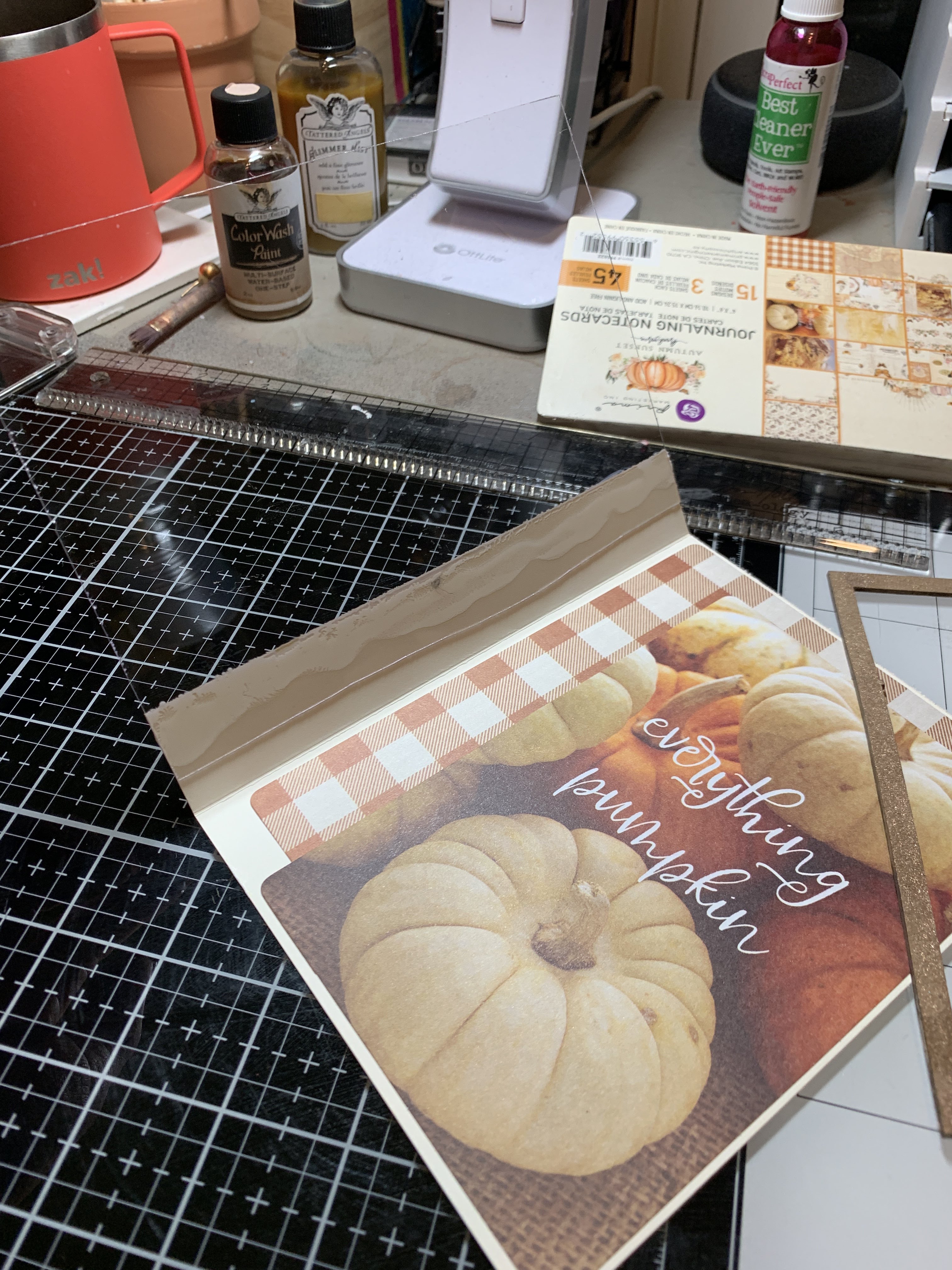 Start by cutting away the chipboard embellishment and mist chipboard frame as desired. Let Dry.