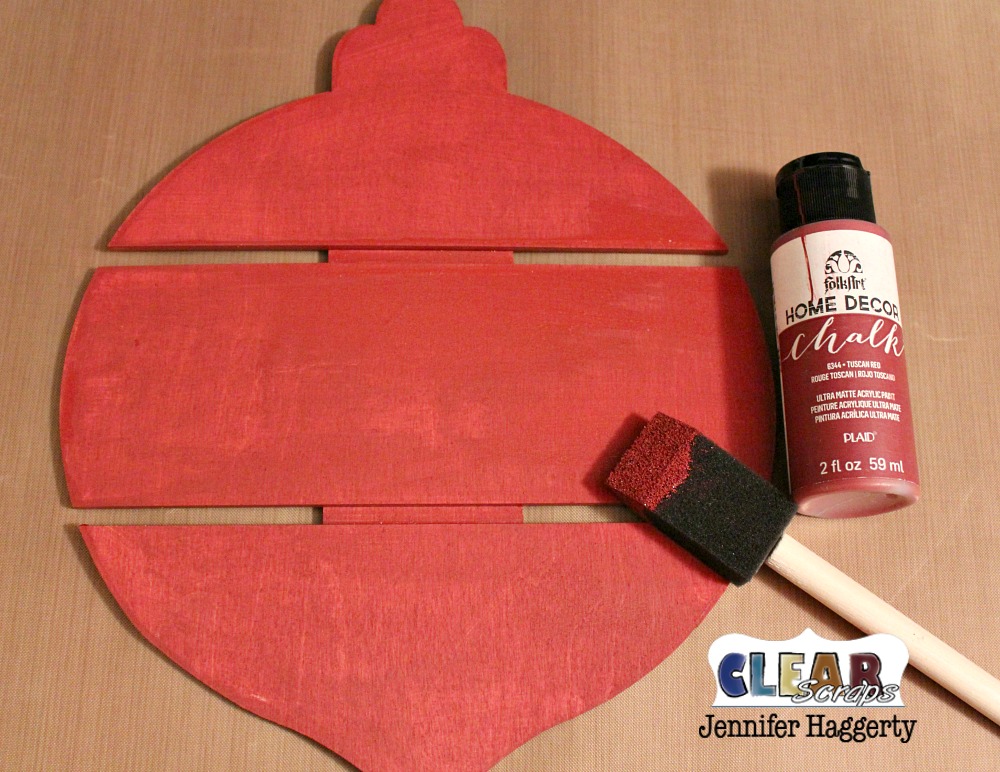 I began by painting my pallet with chalk paint in a dark red color. I found I only needed one coat as the birch wood helps the paint go on smoothly. You will also find that the chalk paint dries quickly.