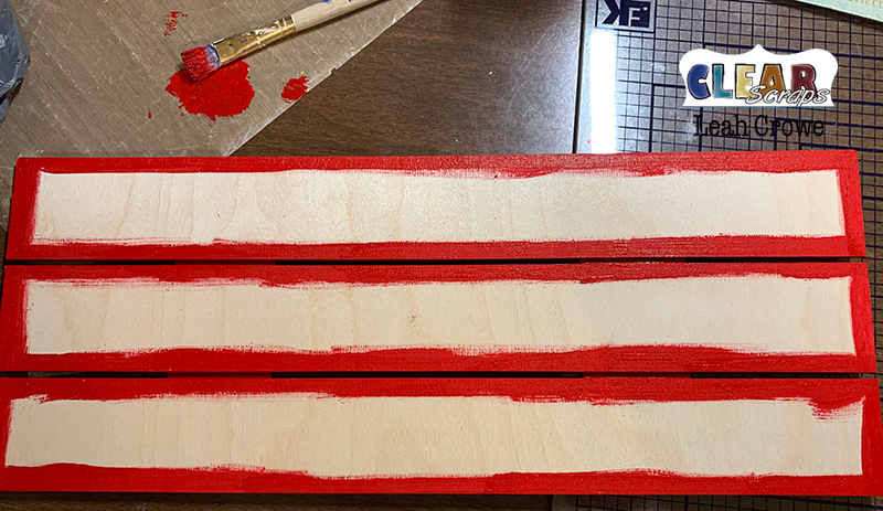 I started off by painting just the edges of the pallet in red. I knew I wanted a small border all around the paper edges I would be adhering to.
