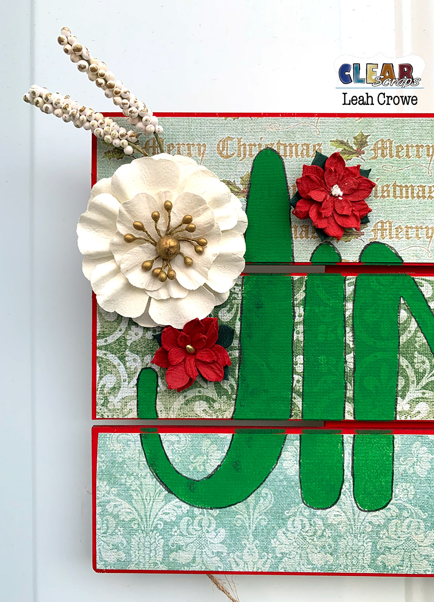Hey, Clear Scraps friends! Leah here with you today sharing my take on another crafty homemade Christmas home decor sign using Clear Scraps Medium Rectangle Pallet and the Large Jingle all the way stencil.