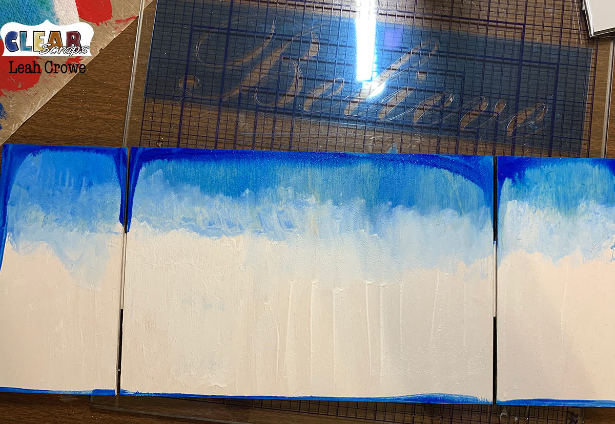 I decided to roll with it and proceeded to paint the background of the wood pallet shape white and blue.