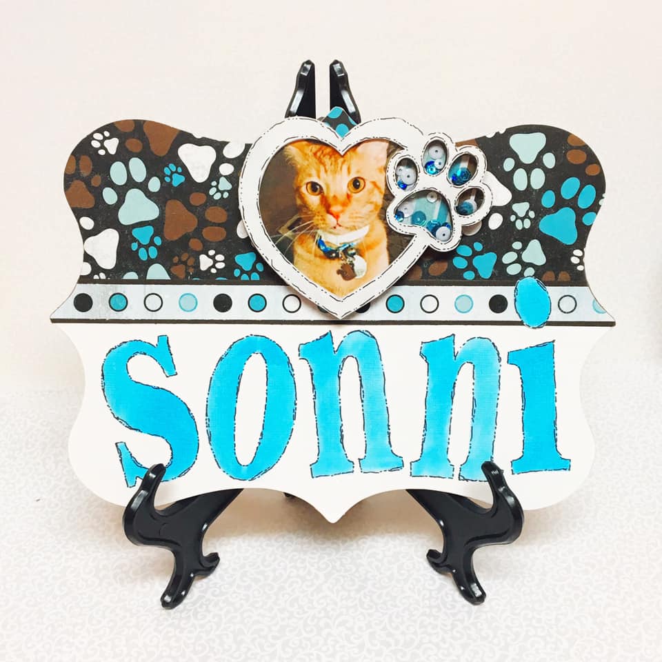 The Mini Paw/Heart Shaker was then adhered to the center top of the Deco Wood Shape.