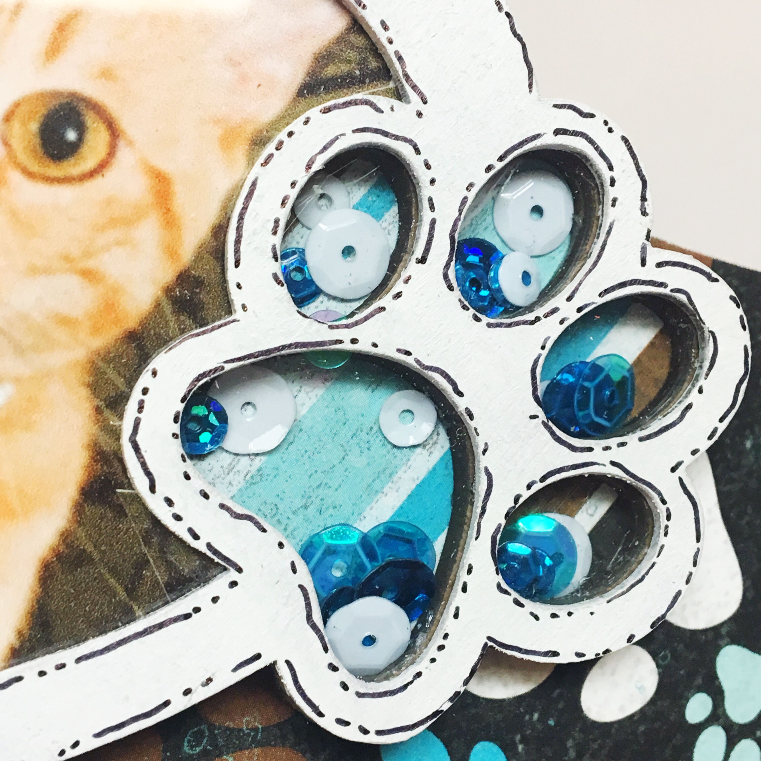I added the blue and white sequins from the Ocean Sequins to the paw portion of the shaker.