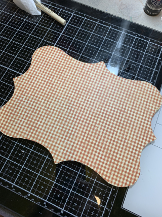I started by covering my pallet with patterned paper. I then punched holes in the pallet and added jute for hanging.