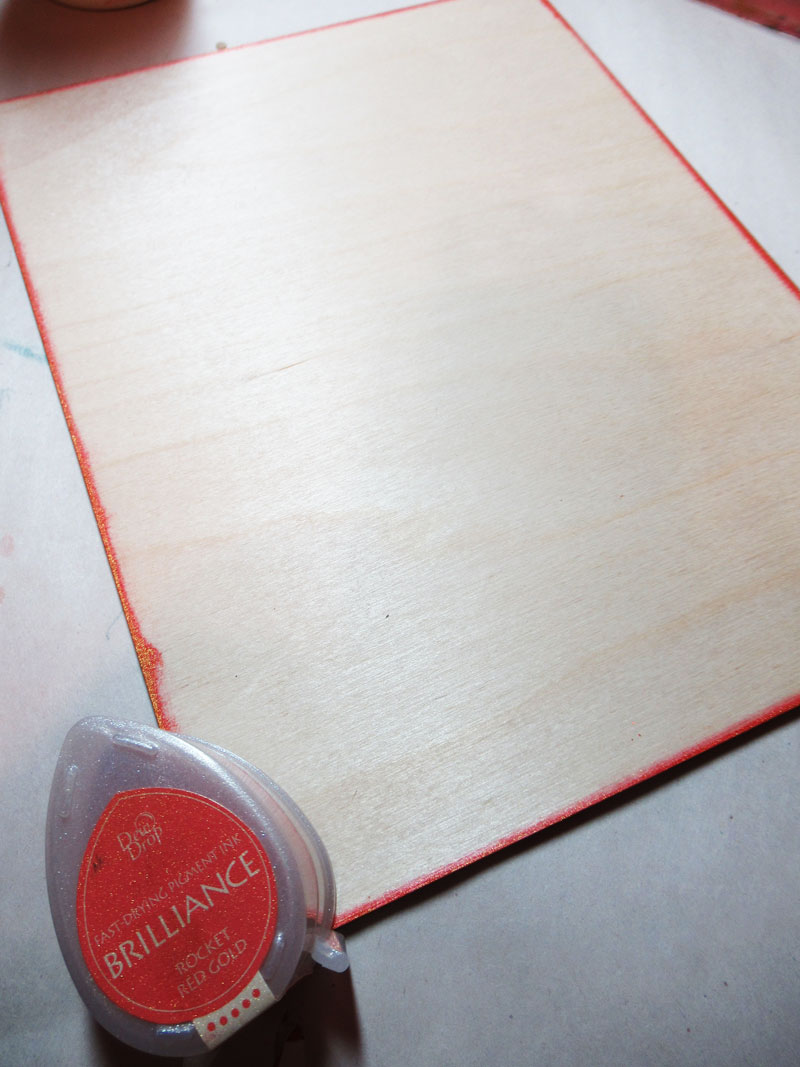 I loved the wood finish and did not want to take away from it's beauty so I simply inked the edges with red ink.