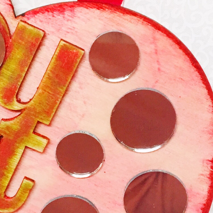 Then add mirrors to the center of the "O" and to dot the "i" as well as arrange some to the upper right of the heart.