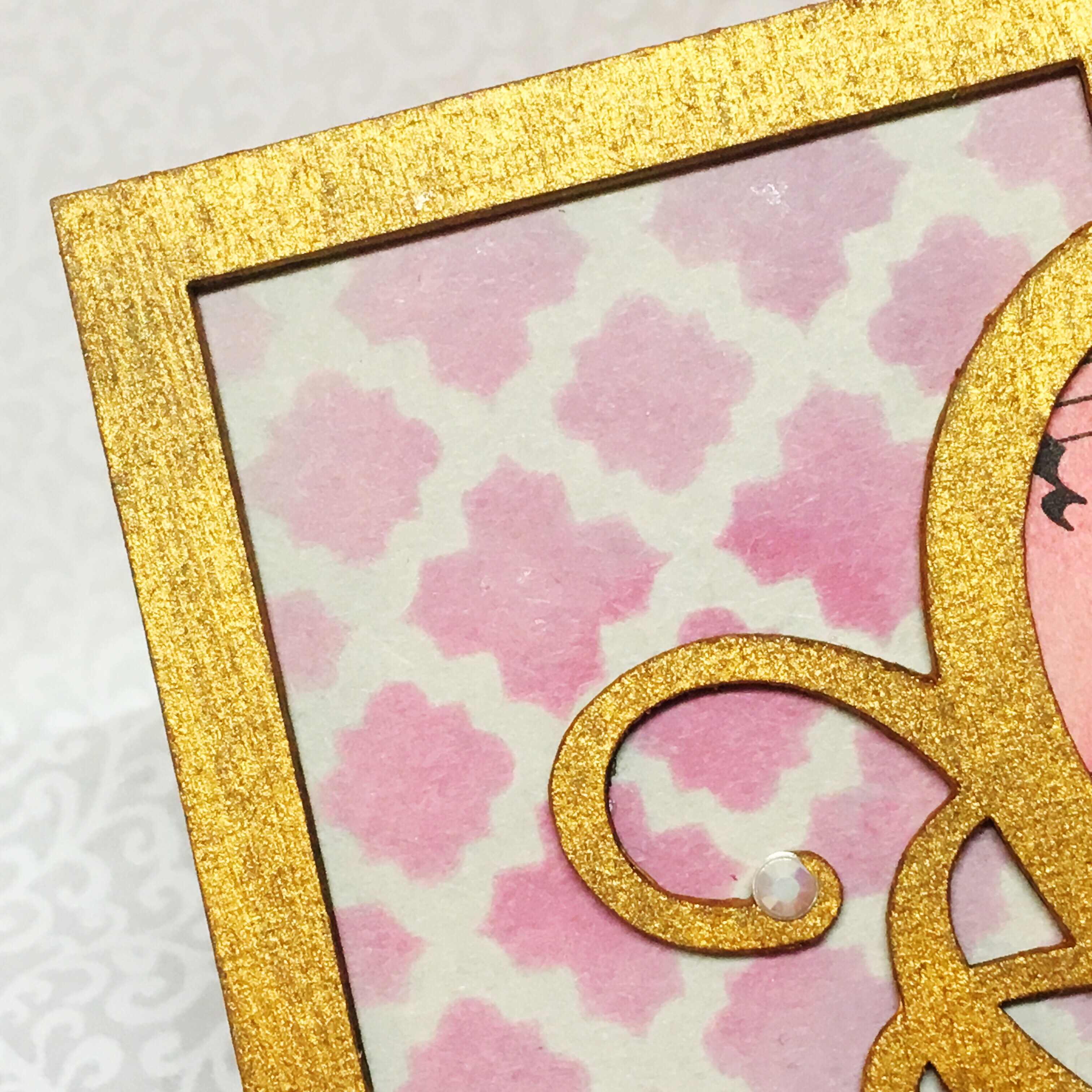 Fold a 6 X 8 piece of coordinating cardstock in half to make the card base and adhere the chipboard frame to the front.
