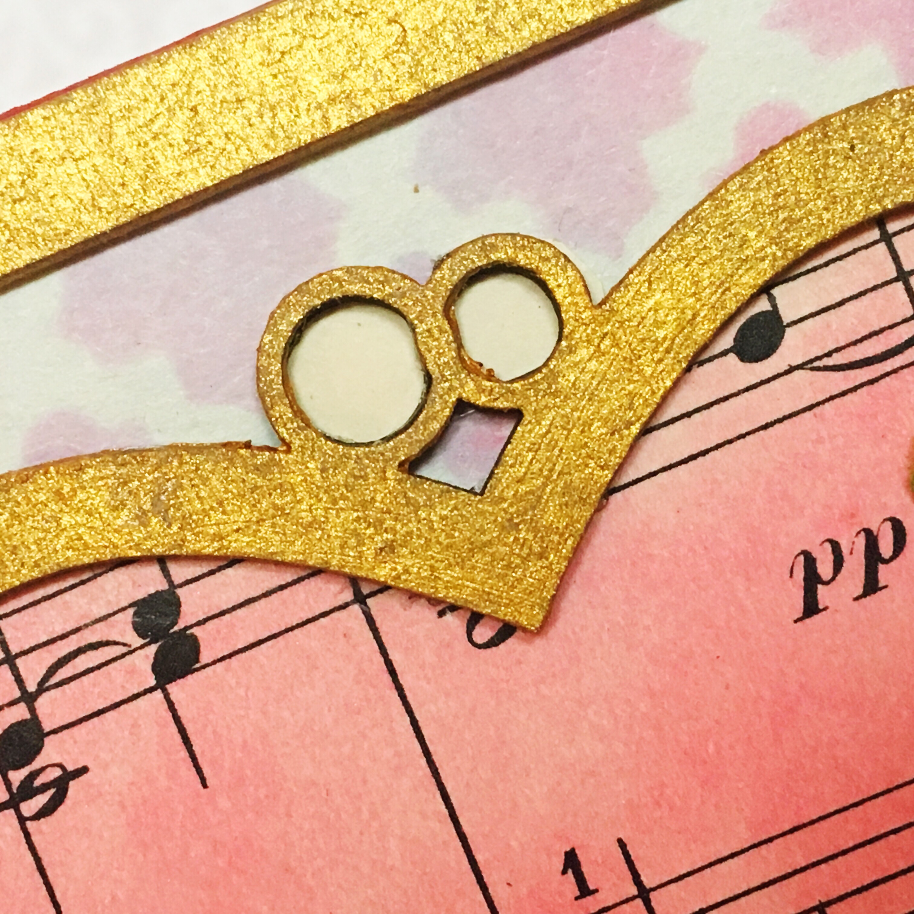 Next, I spritzed a piece of vintage music paper lightly with water then inked it with pink ink to create a watercolor effect on the paper.