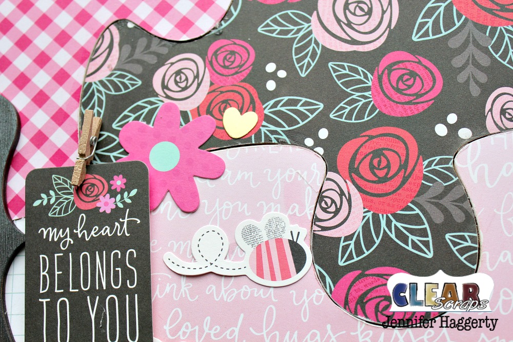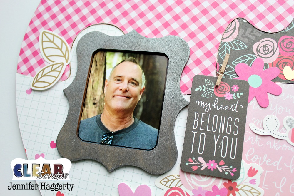 Hello! It's Jennifer on the blog today to share the new Heart XL Wood Puzzle Shape! Each Puzzle Shape comes in four pieces which you adhere together. Since its February, I created mine with Valentine themed paper and a cute picture of my husband!