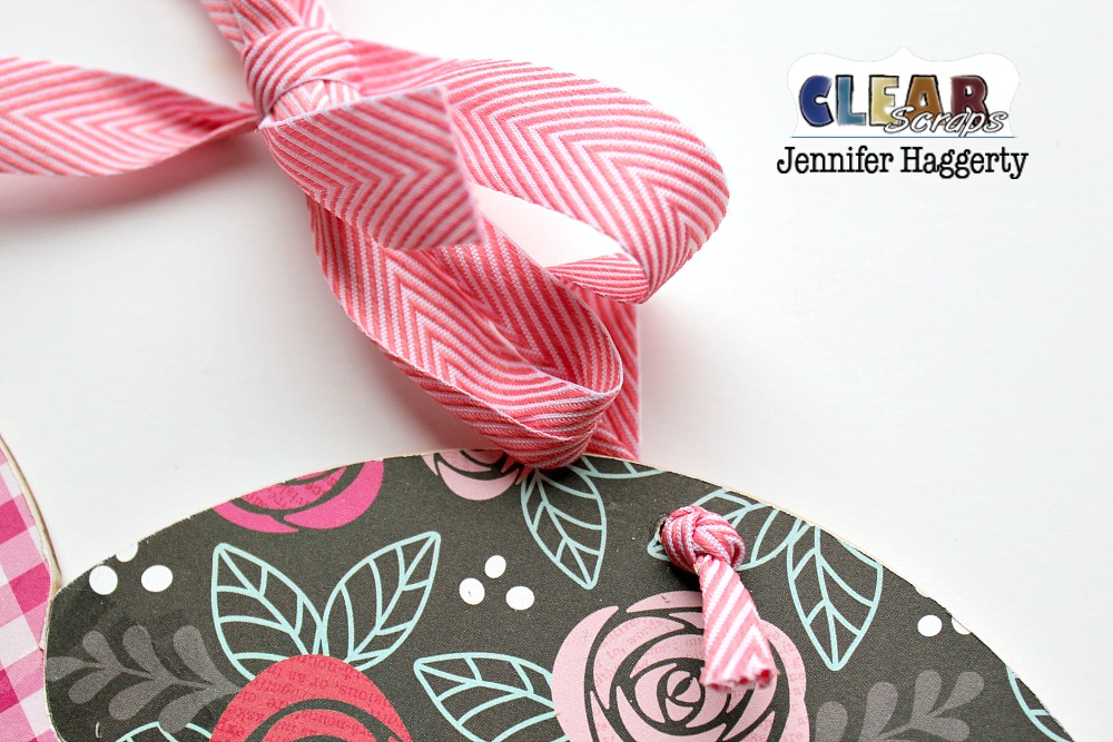 To finish, I used a punch to place holes at the top of my Puzzle (a Crop-o-dile or Big Bite works great). I then tied pink and white chevron ribbon to hang my project!
