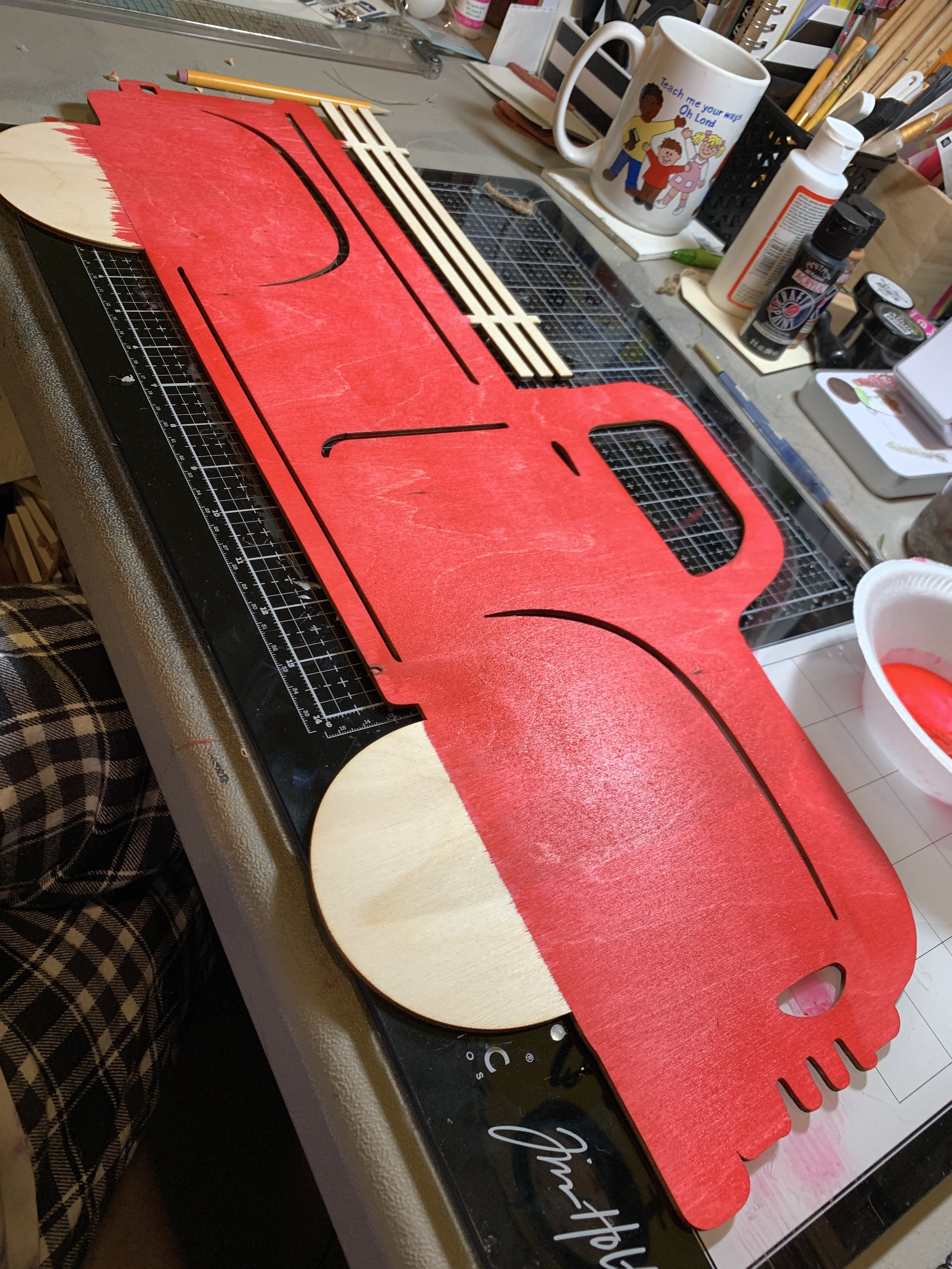 I Began by painting my truck. I wanted a distressed look so I diluted my paint with water.