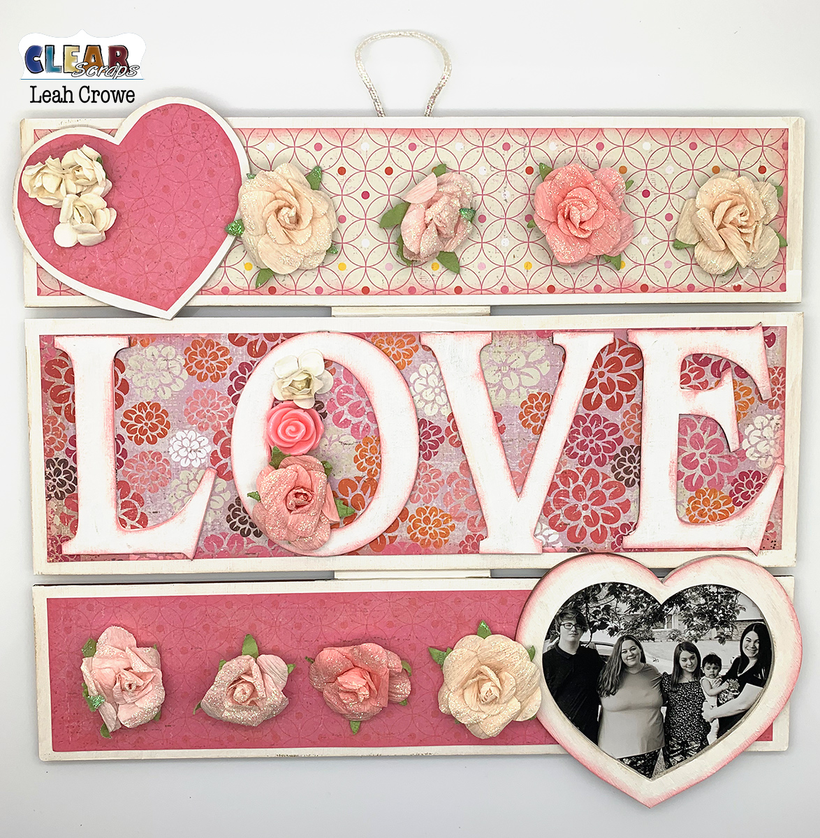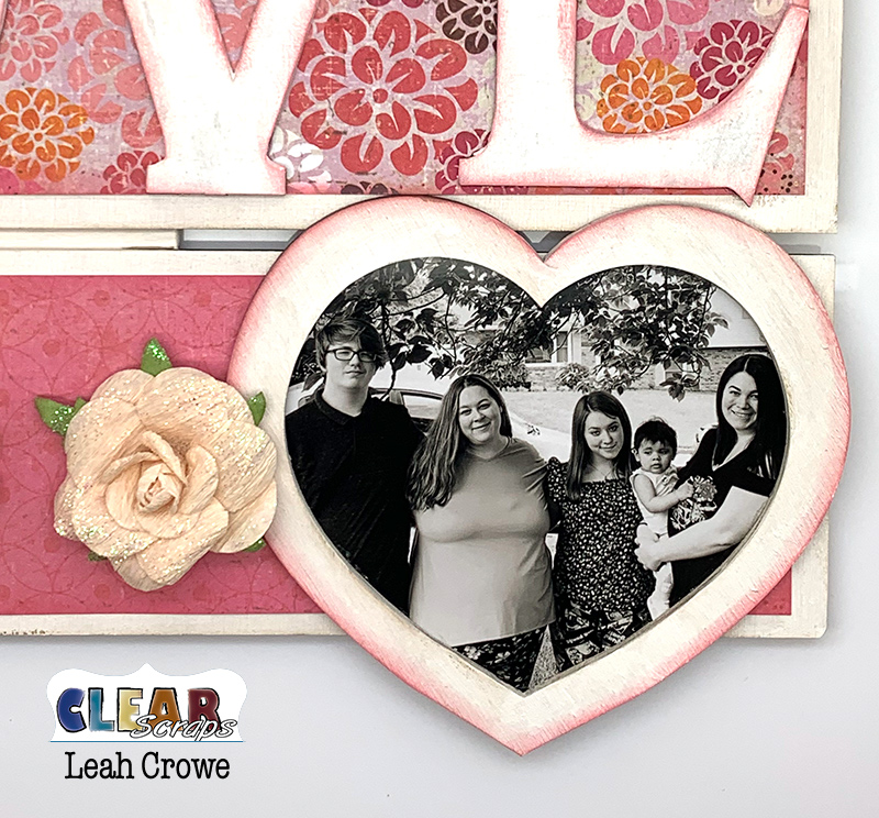 Happy hearts Day Clear Scraps fam! I love hearts and being able to create with the new small WOOD heart frame, 10 x 12 rectangle pallet, and LOVE chipboard embellishment had me thinking this was perfect for displaying the love of family.