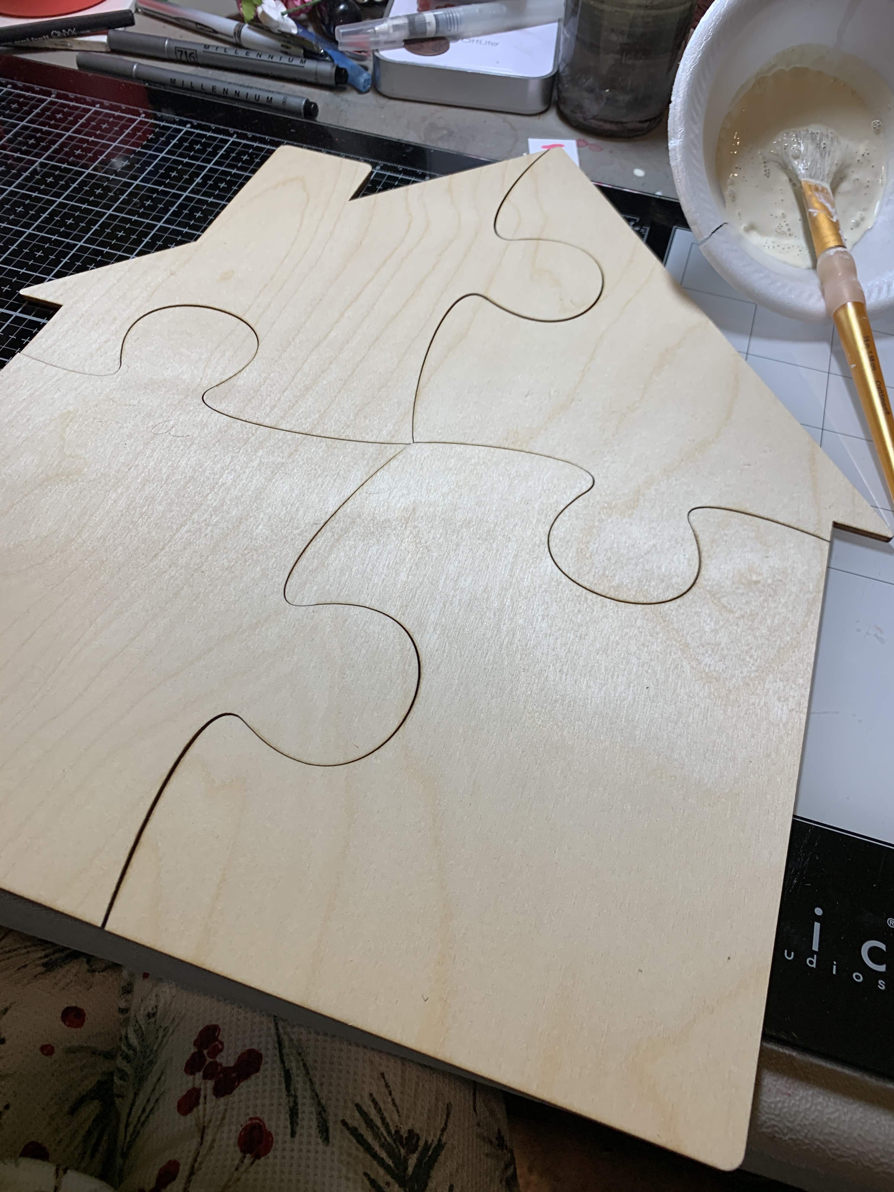 Start by painting your heart. White wash puzzle with diluted white paint. Let Dry.