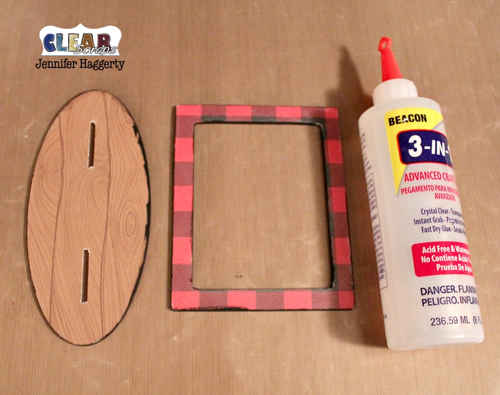 Once I had my photo in place, I adhered my frame to the front of the Desktop Frame using the Beacon Adhesive. I then lined up the slots on both base pieces and adhered them together. Last, I inserted the two wood prongs into the slots adding extra Beacon for security.