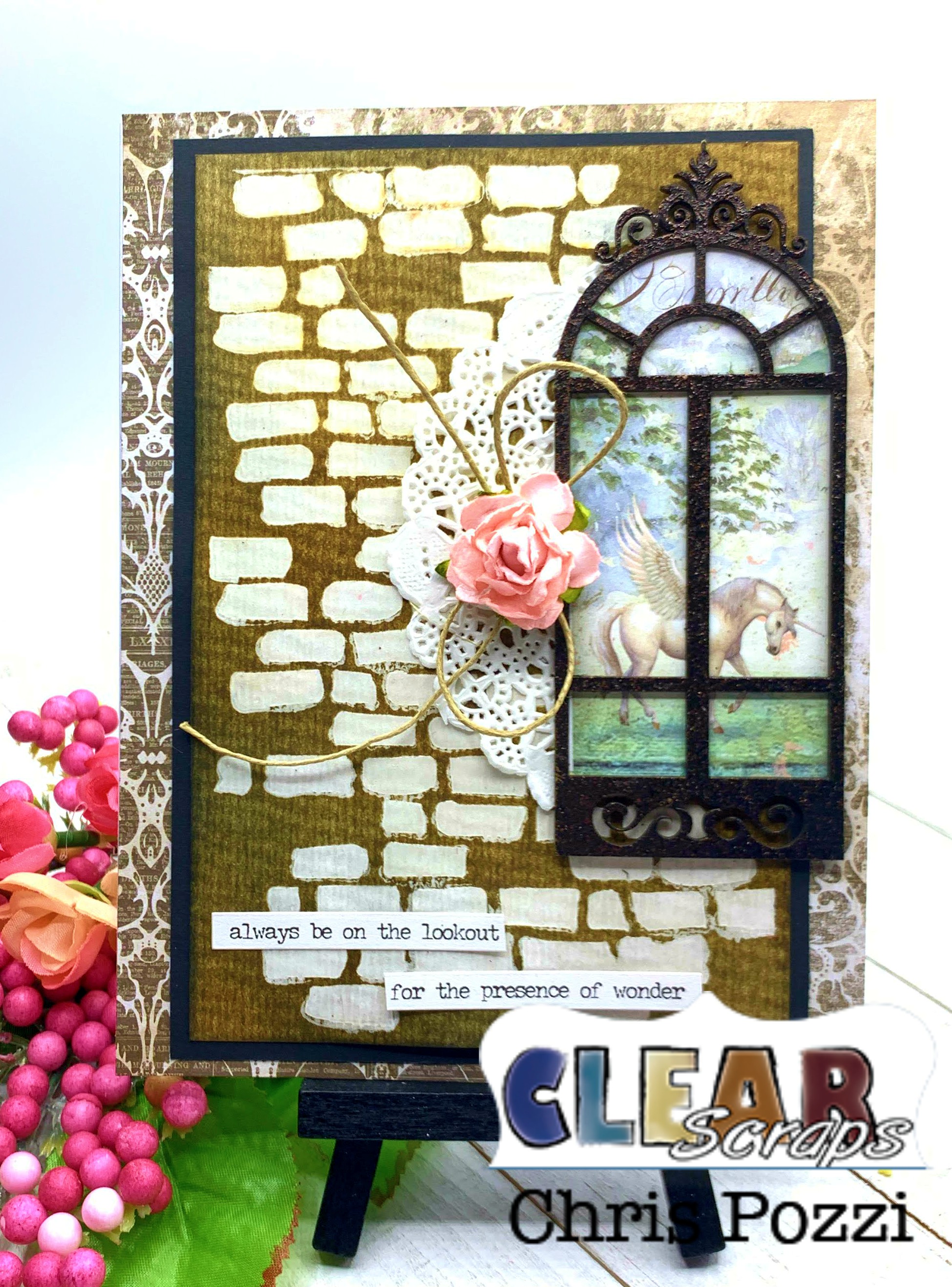 Greetings! Chris here and today I am exited to share this stenciled card I created for Clear Scraps! I love adding stencils to my projects!