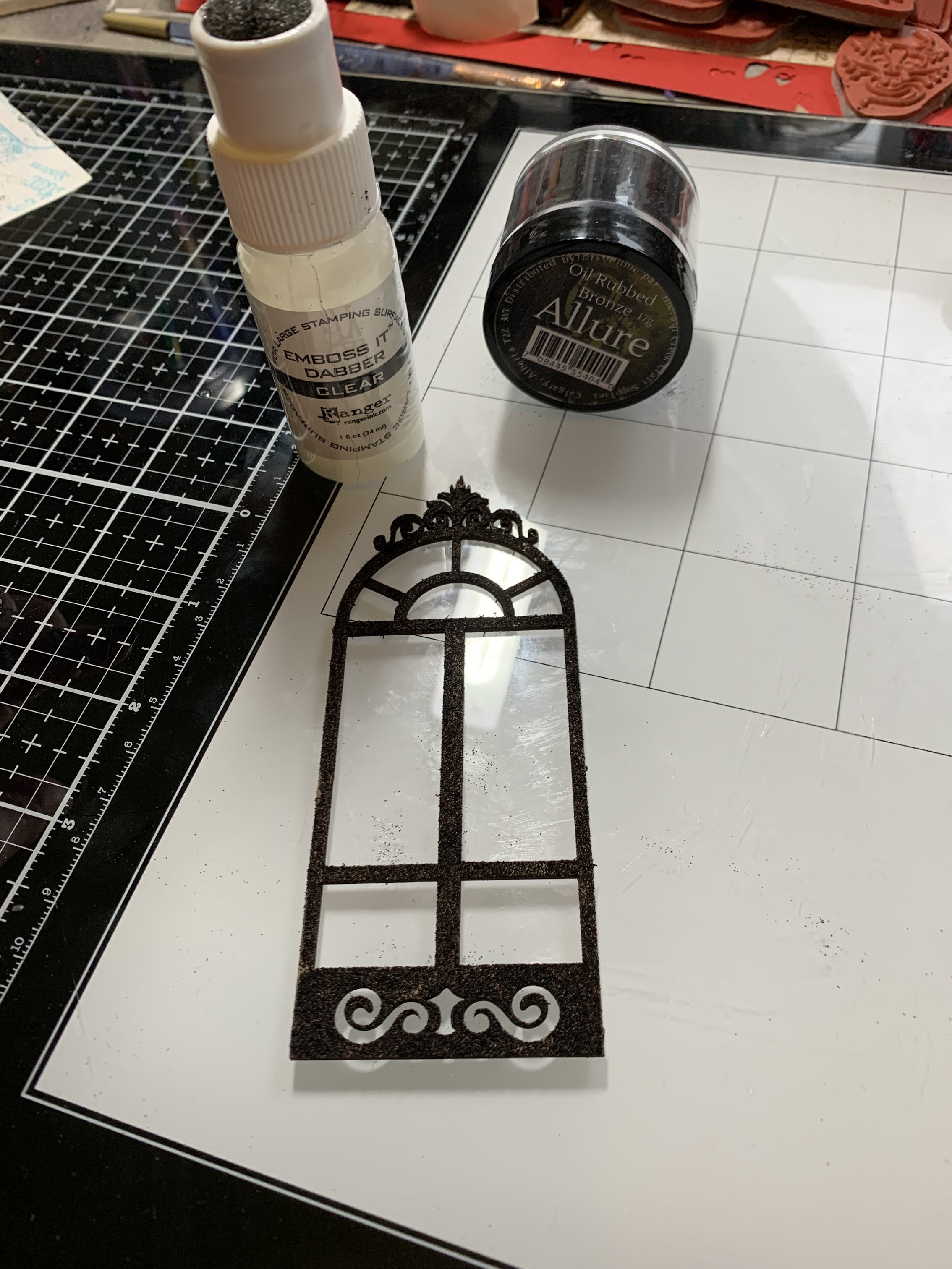 Add embossing ink to window and emboss.