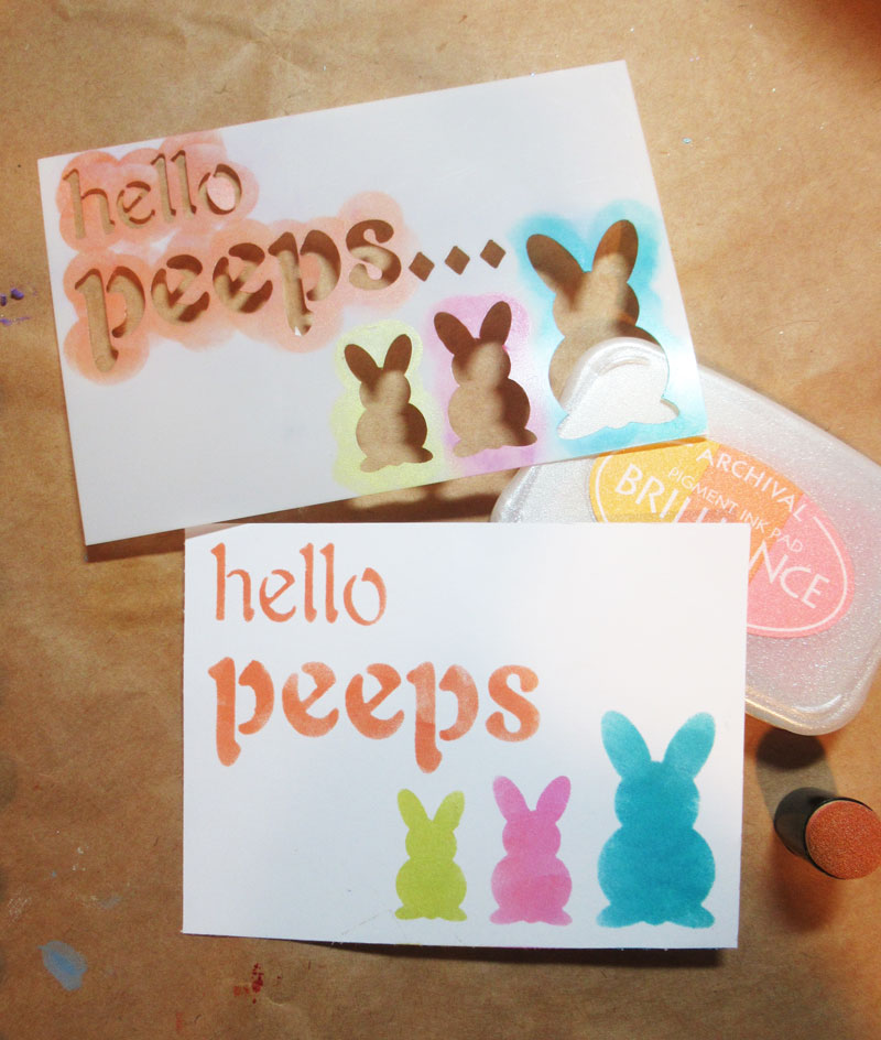 Hi everyone, Steph Ackerman here today using the 4" x 6" Hello Peeps Stencil.