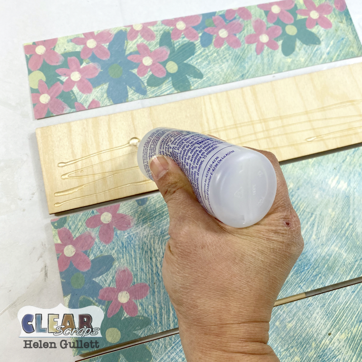 I added each paper strip on the wood pallet with Beacon 3-in-1 adhesive glue. If you don’t have this glue, make sure you use permament strong adhesive glue that works on wood surface.