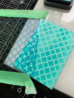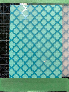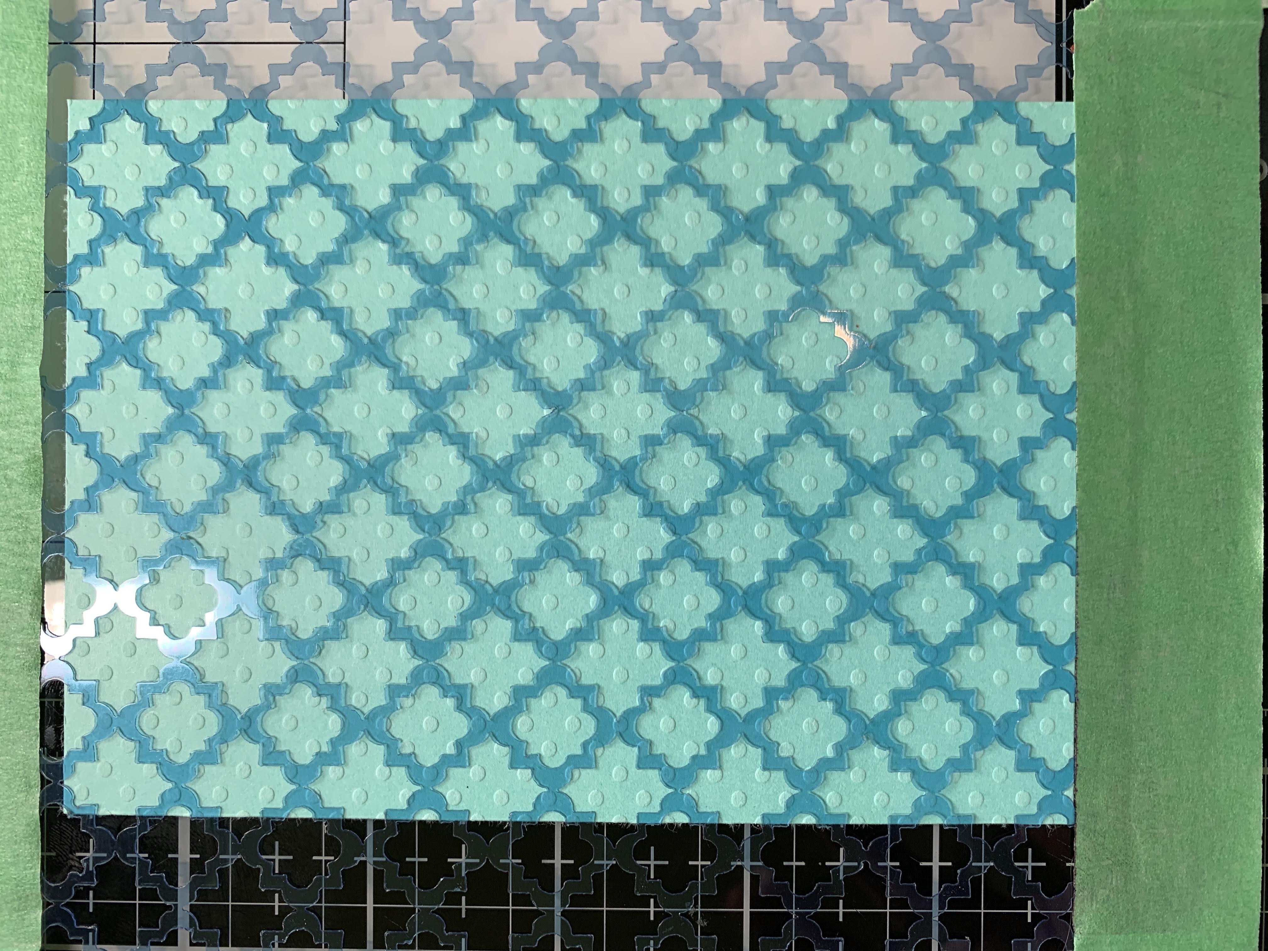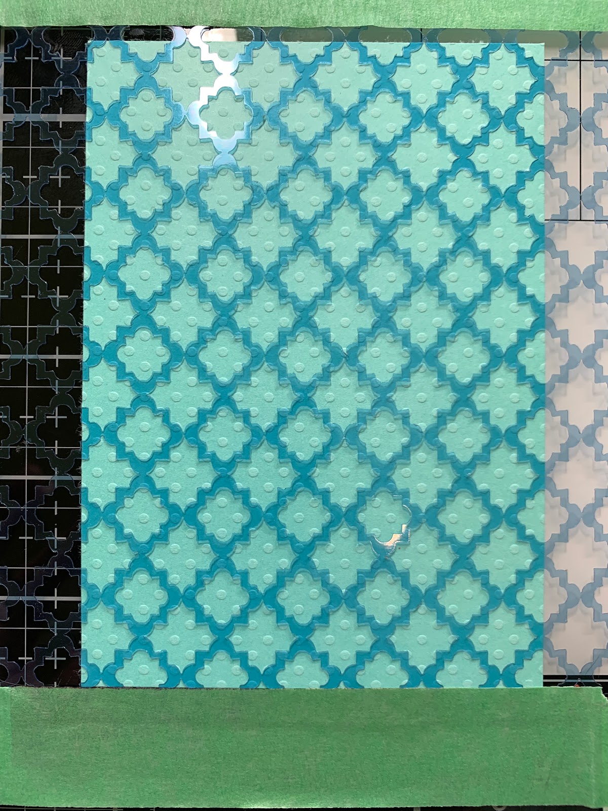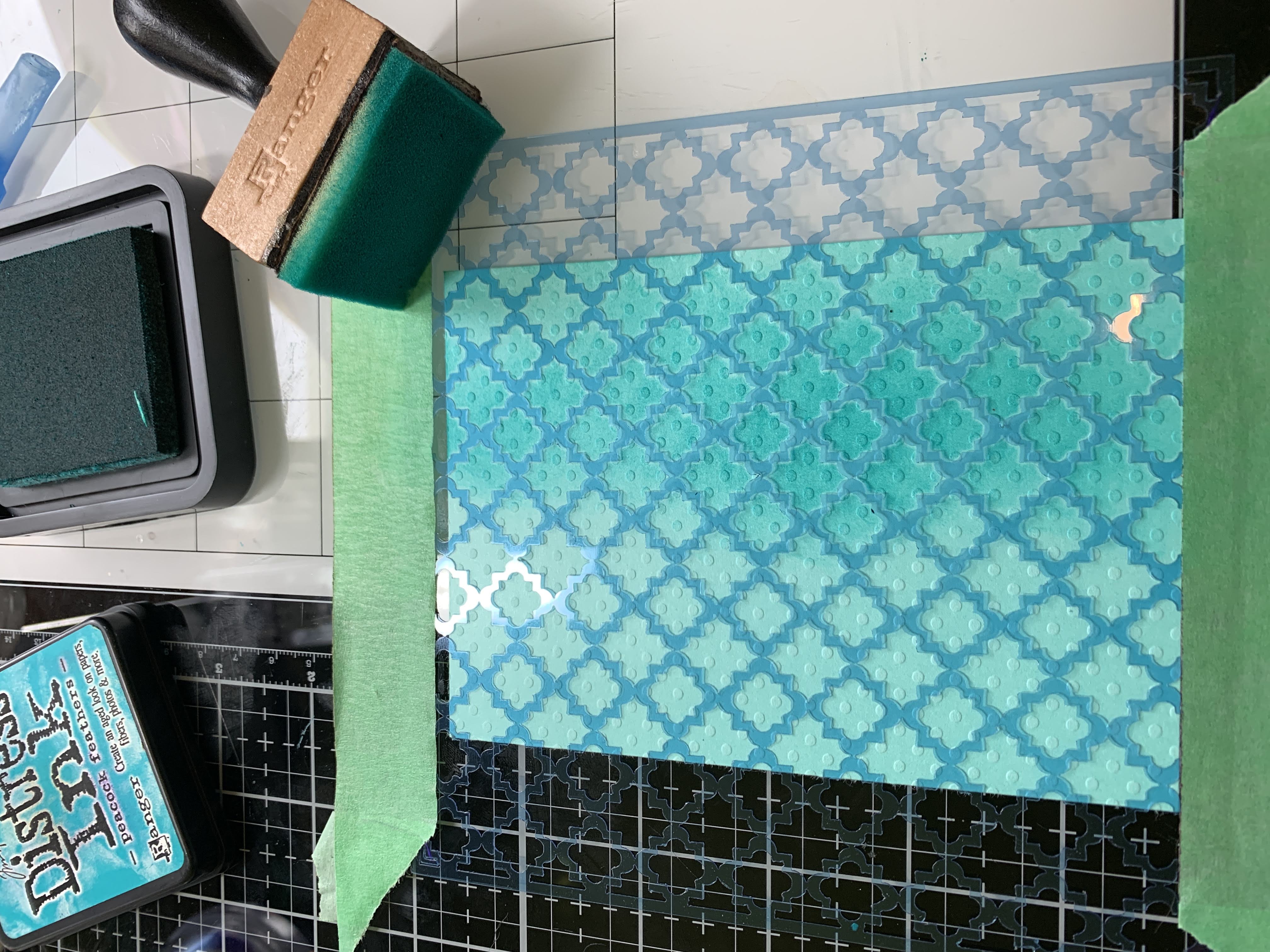 Secure the 6" Quarterfoil Stencil over card stock and add distress ink to ink the card stock.